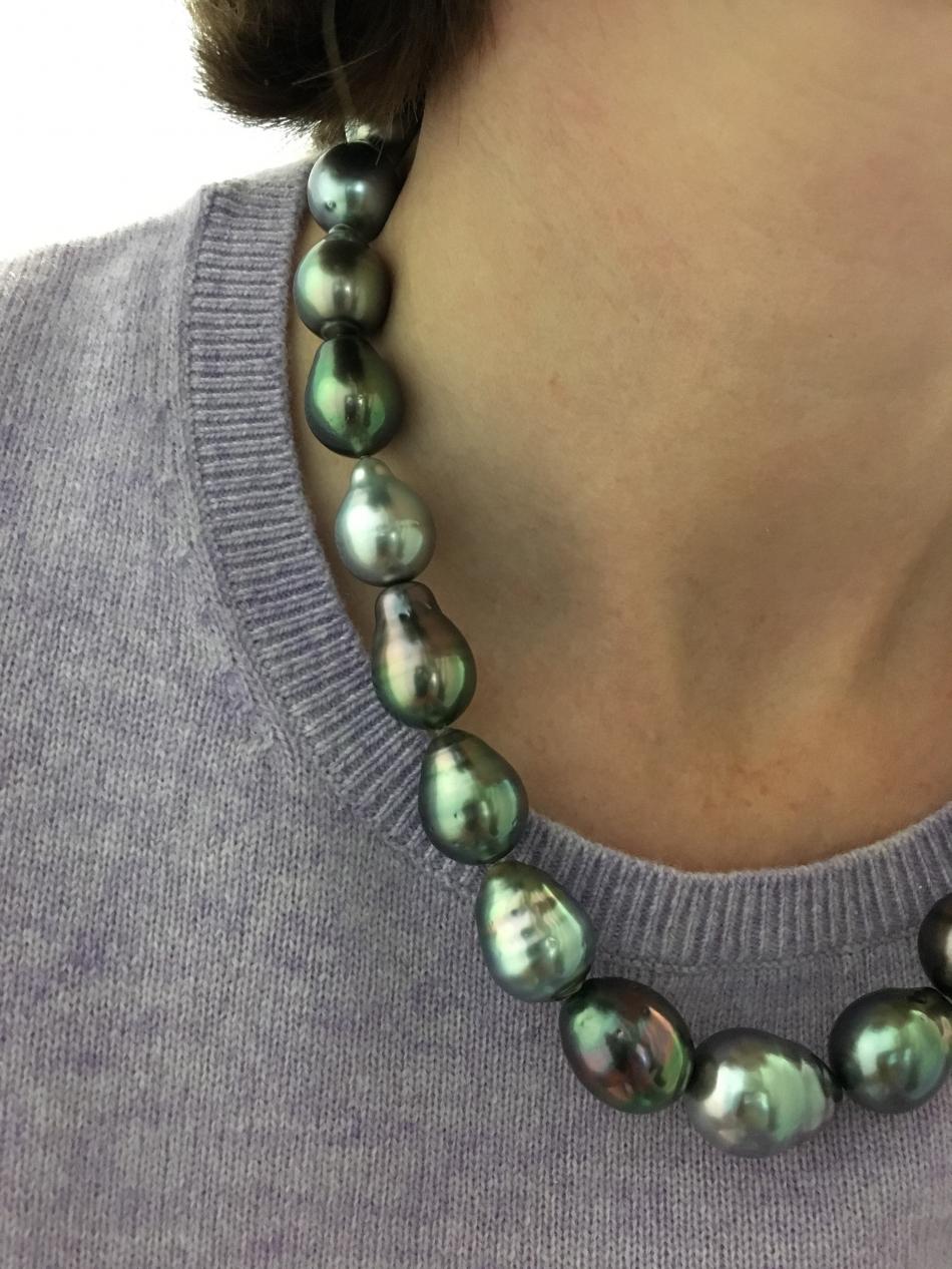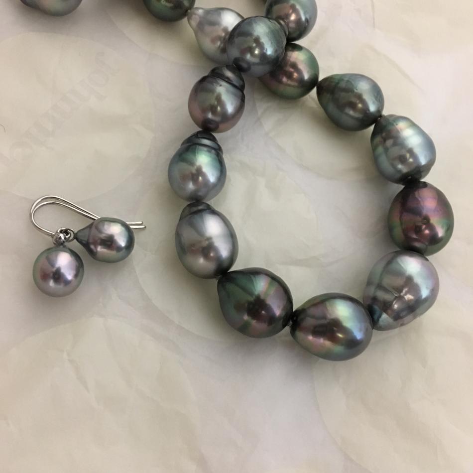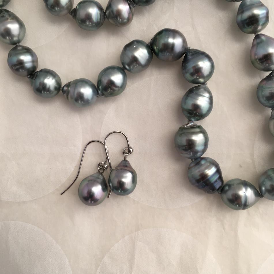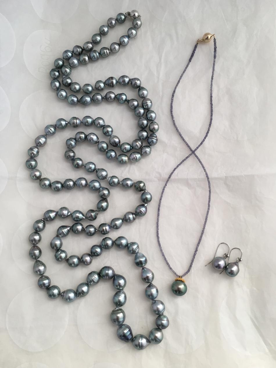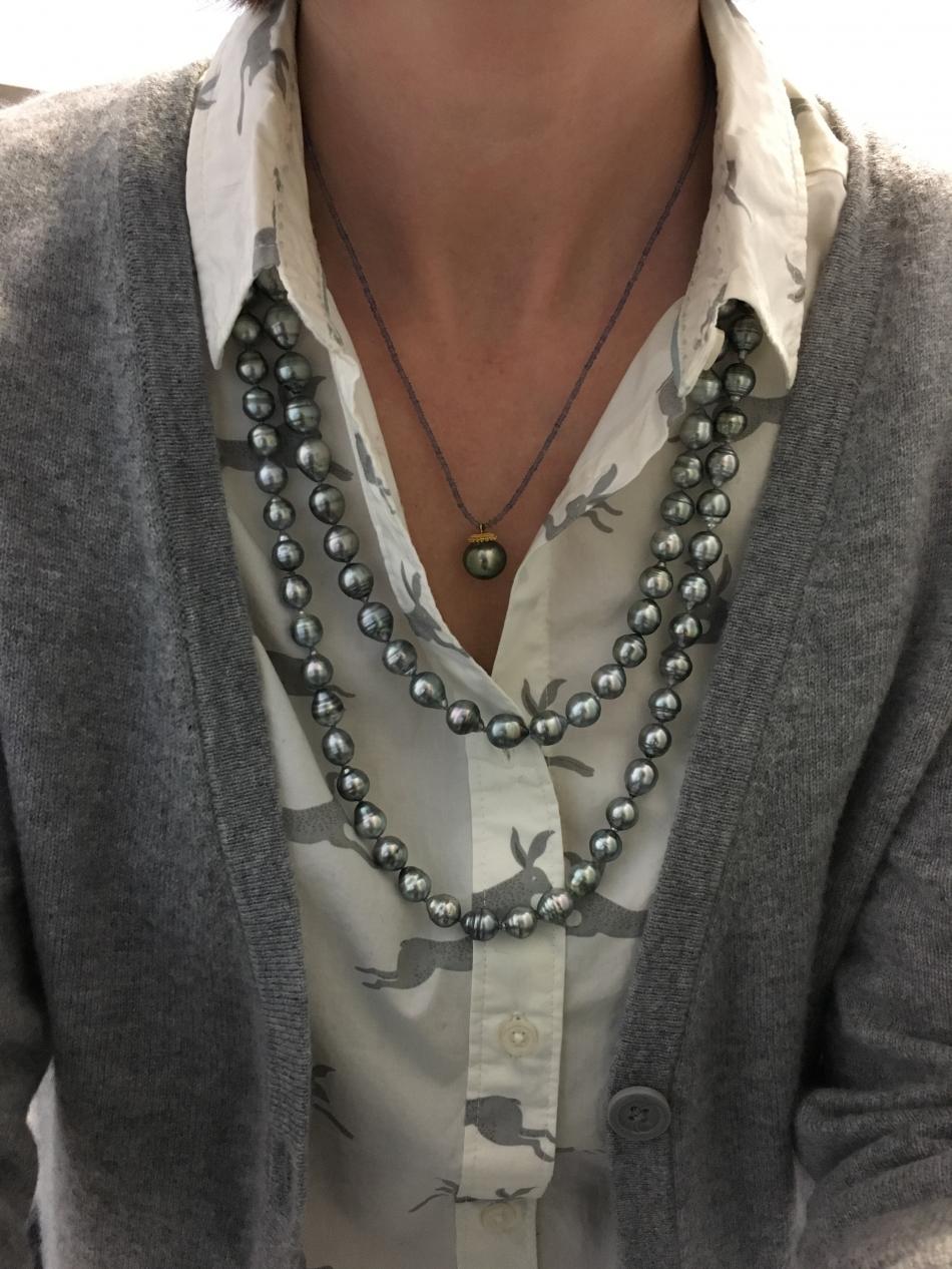 We decided at the last minute to go to a nice restaurant and I needed to upgrade my family's appearance in a hurry so I slipped a short sleeved button down over my older son's long sleeve top, a nice-but-comfy top onto little brother, and some fancy pearls for me: Golay Easter egg Tahitians and Tahitian drops from Pearl Paradise. (Hubby dressed himself.)