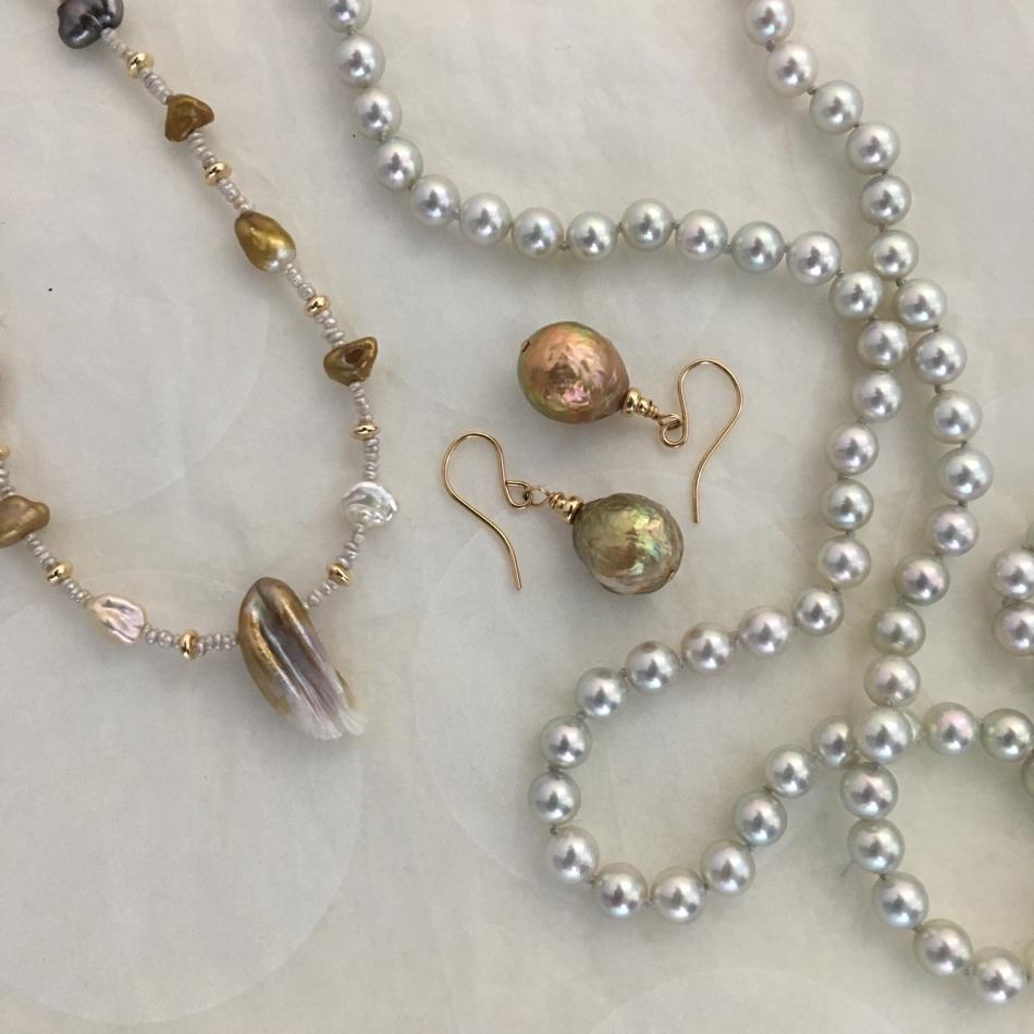 The 18" akoya Keshi necklace is something I added later so it isn't in the group shot on the white tissue paper.