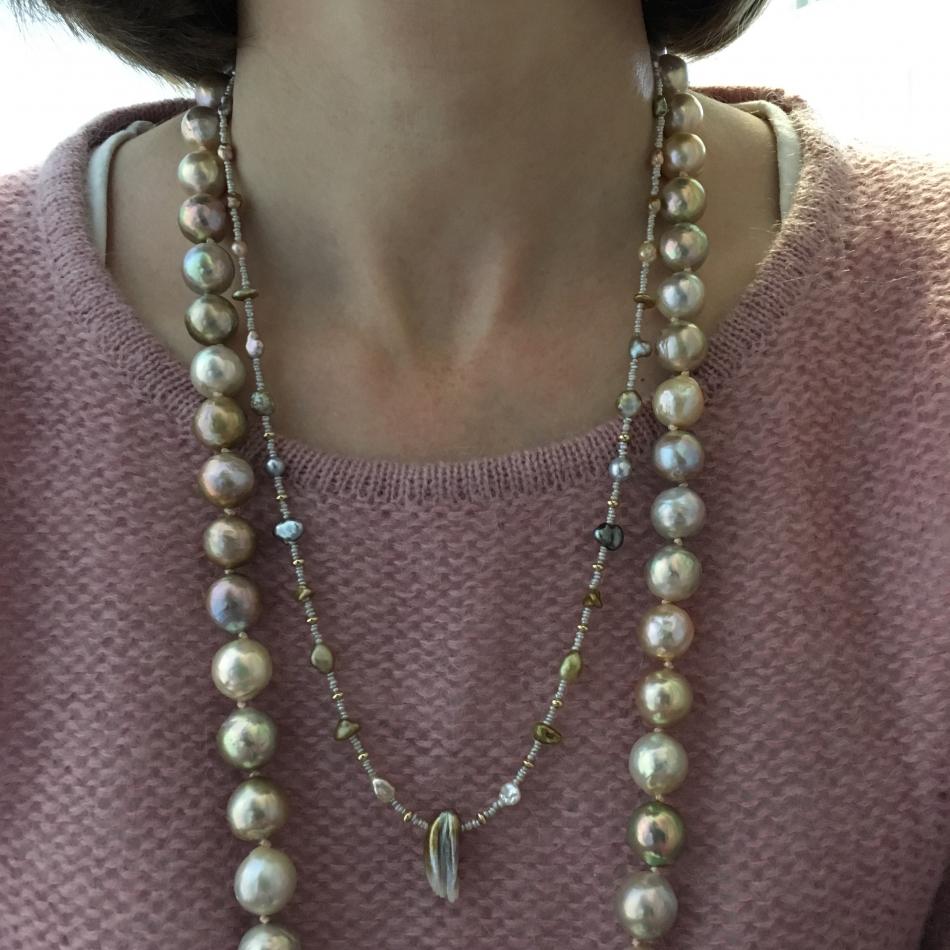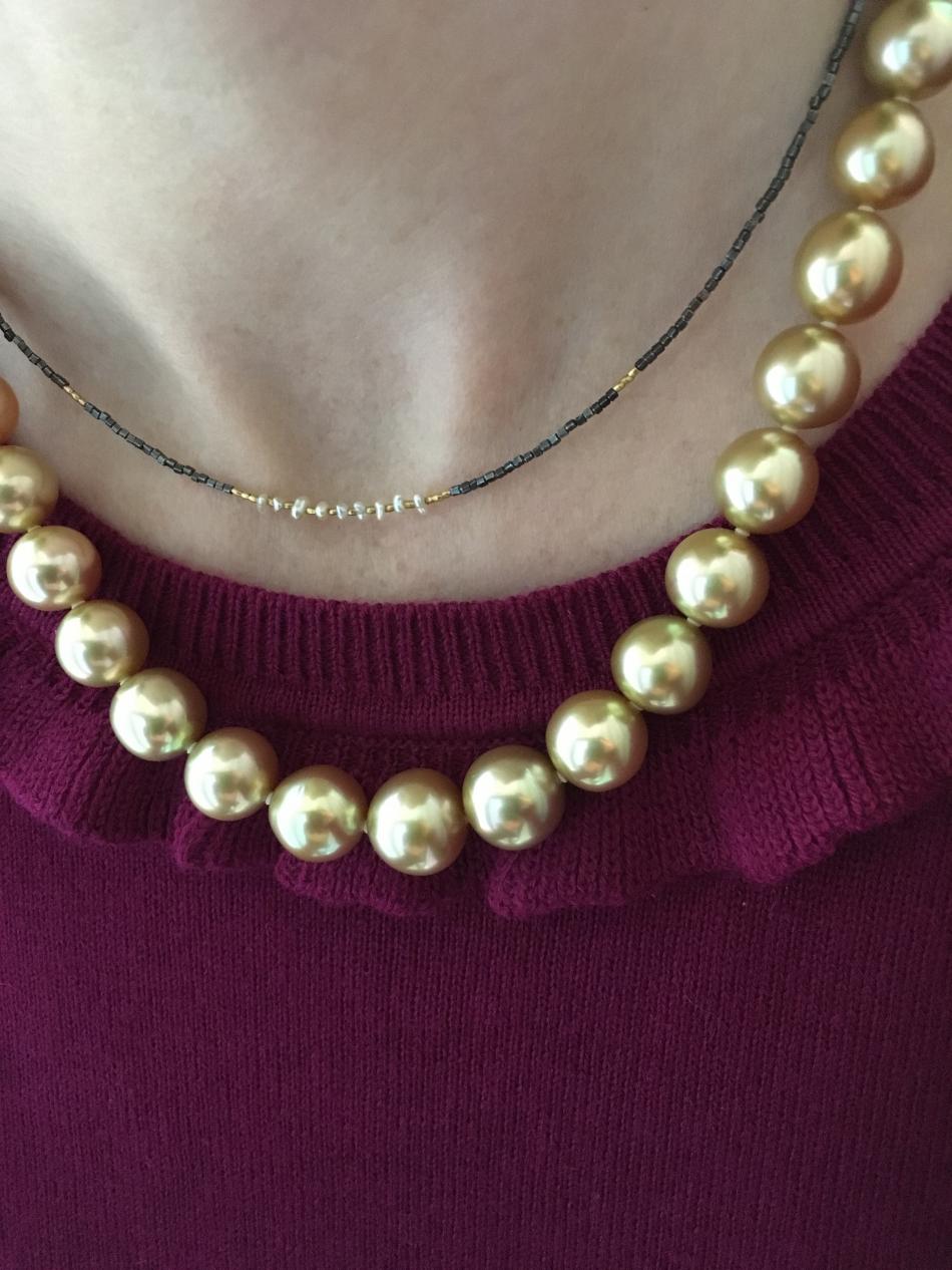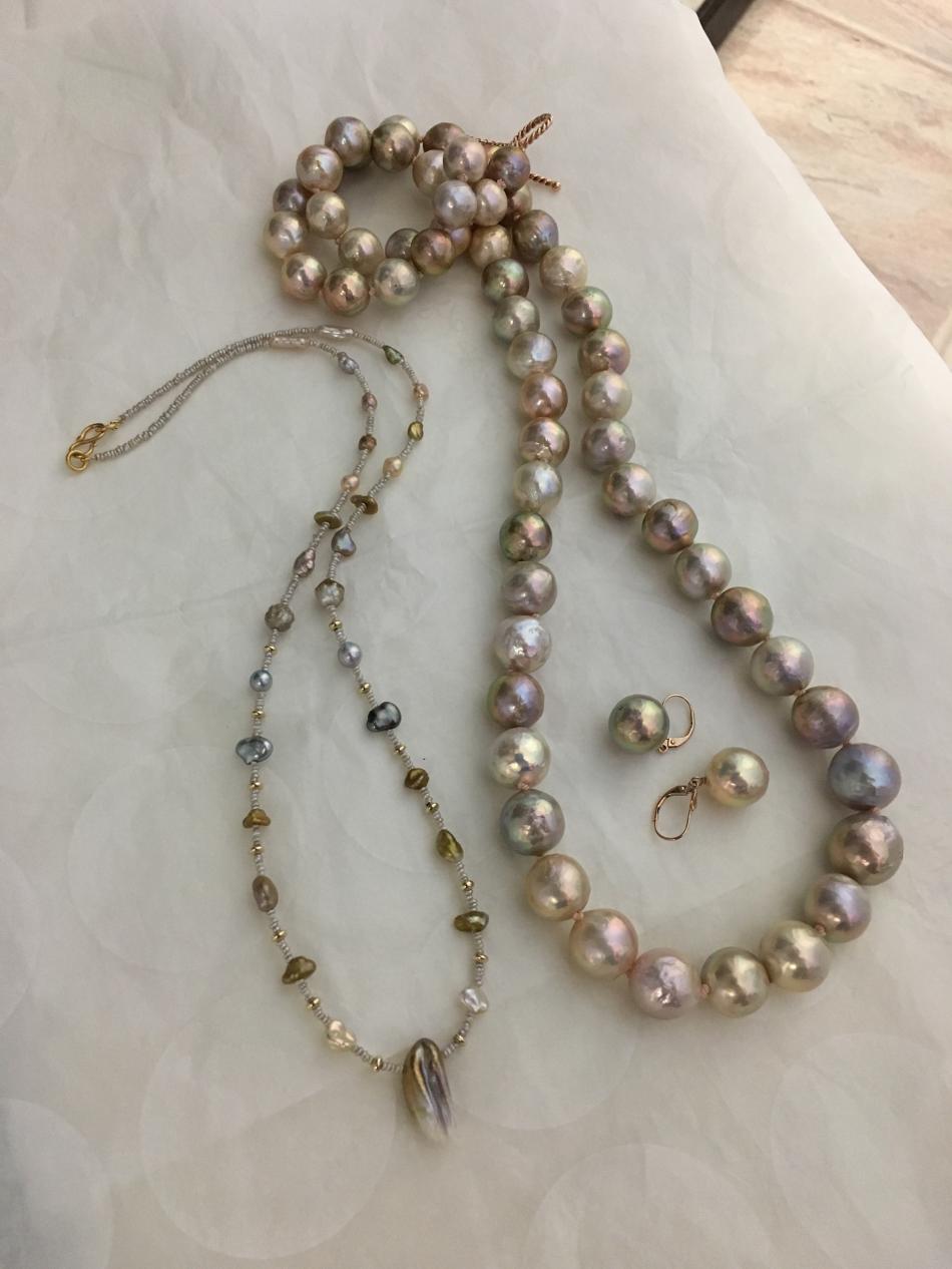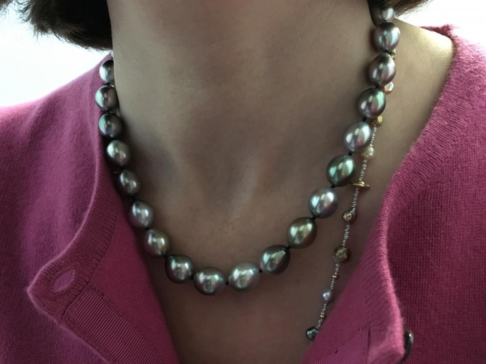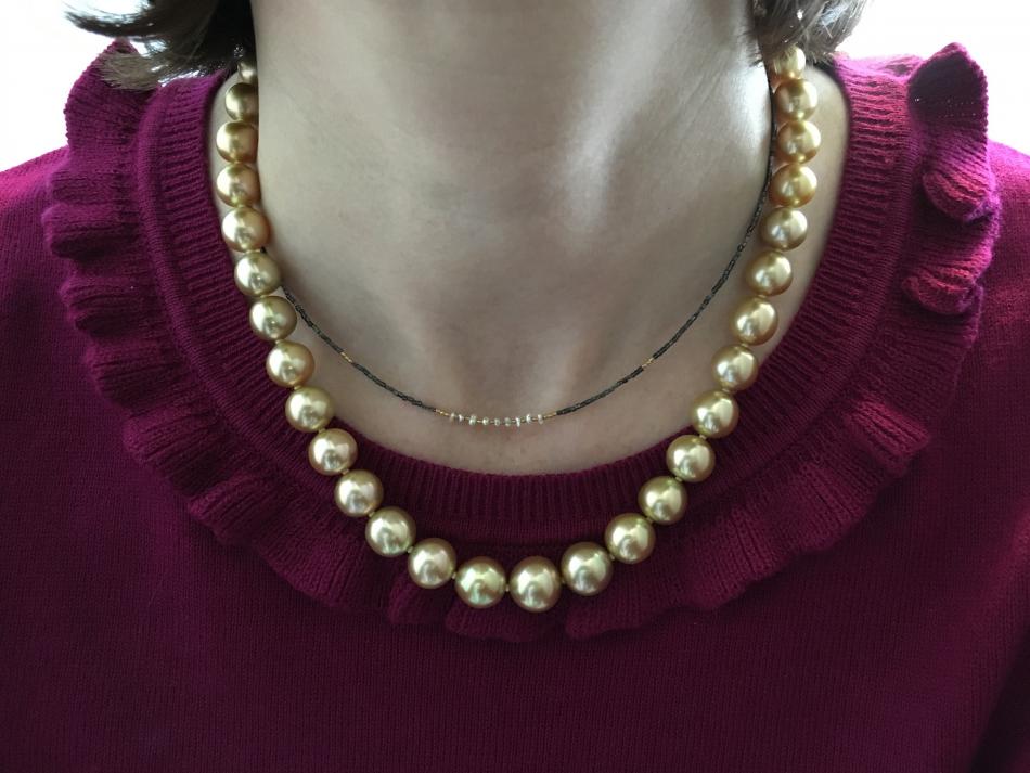 I also got the sweater in light grey, and it looked great with pearls, but the sleeves were an inch tighter than the purple and the turquoise, versions which I also bought. So the grey got sent back. The other sweaters I ordered (crown, dog, hearts) were all size M, and just that bit too tight, so they got sent back, too.