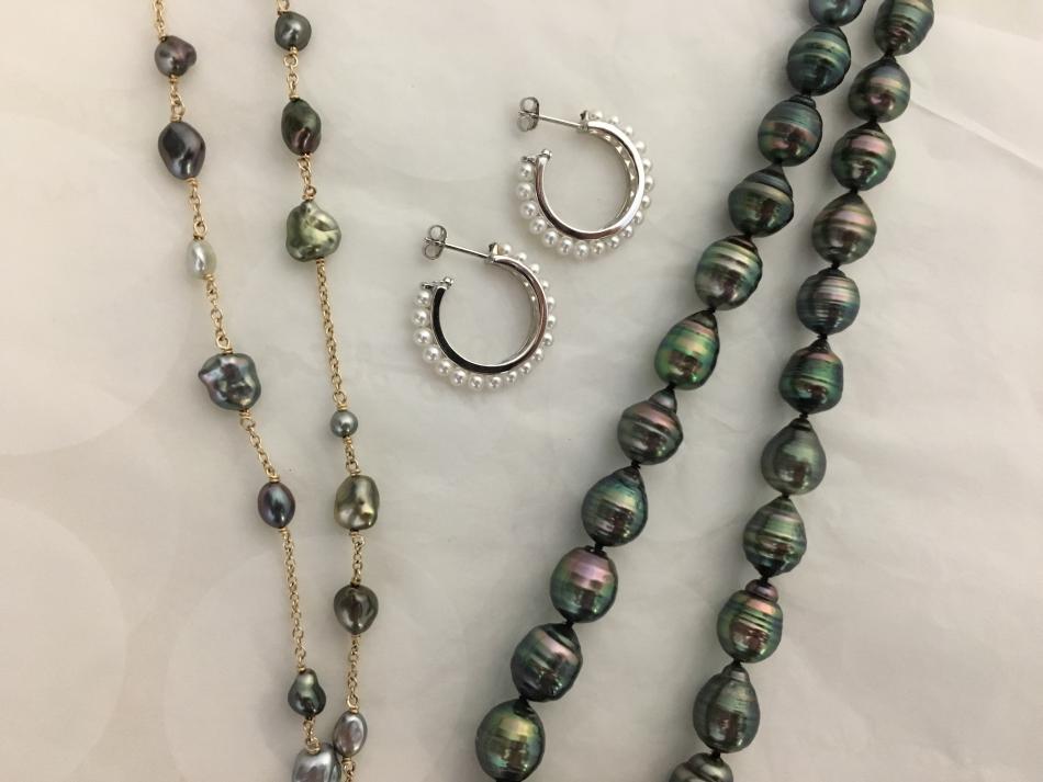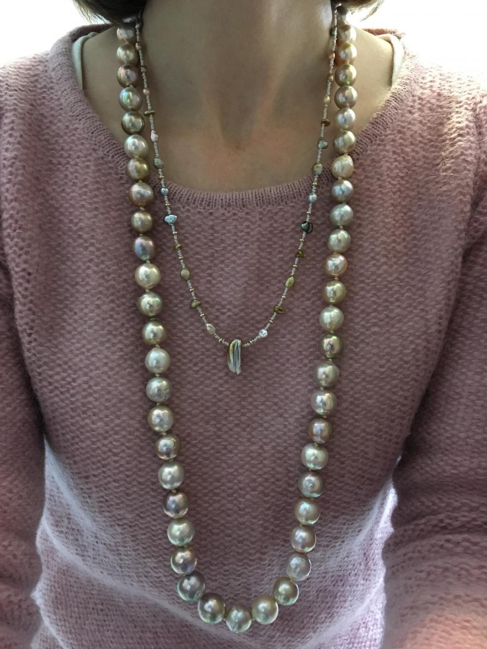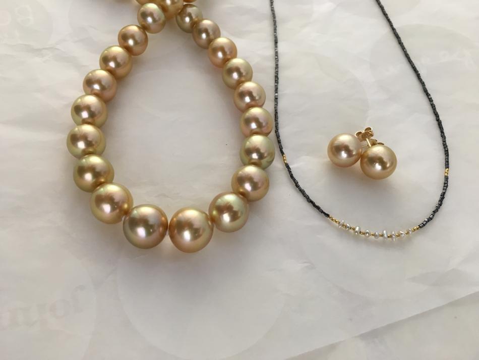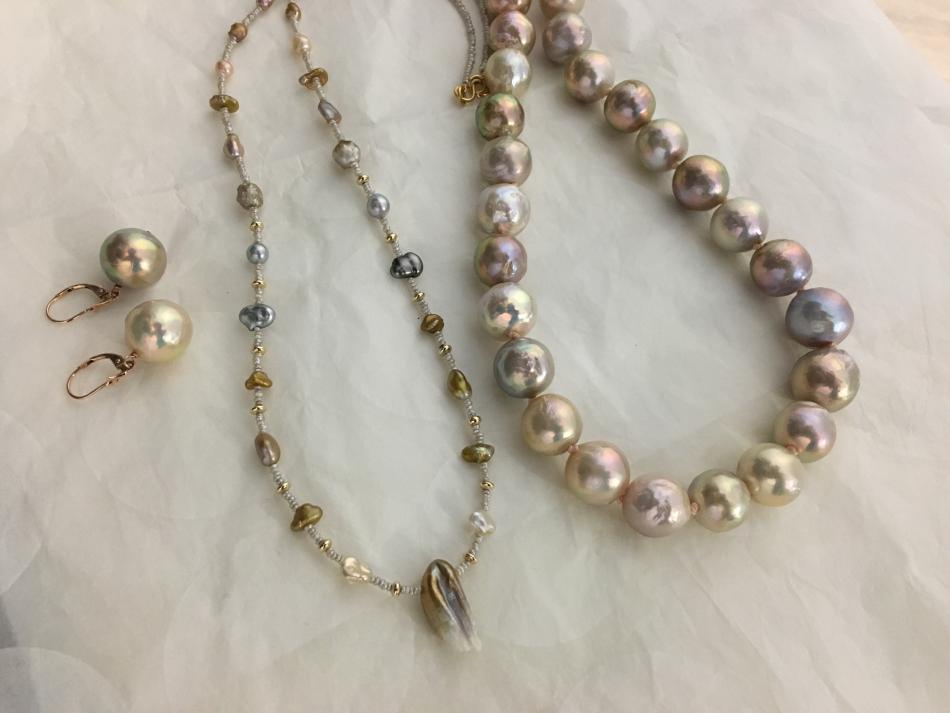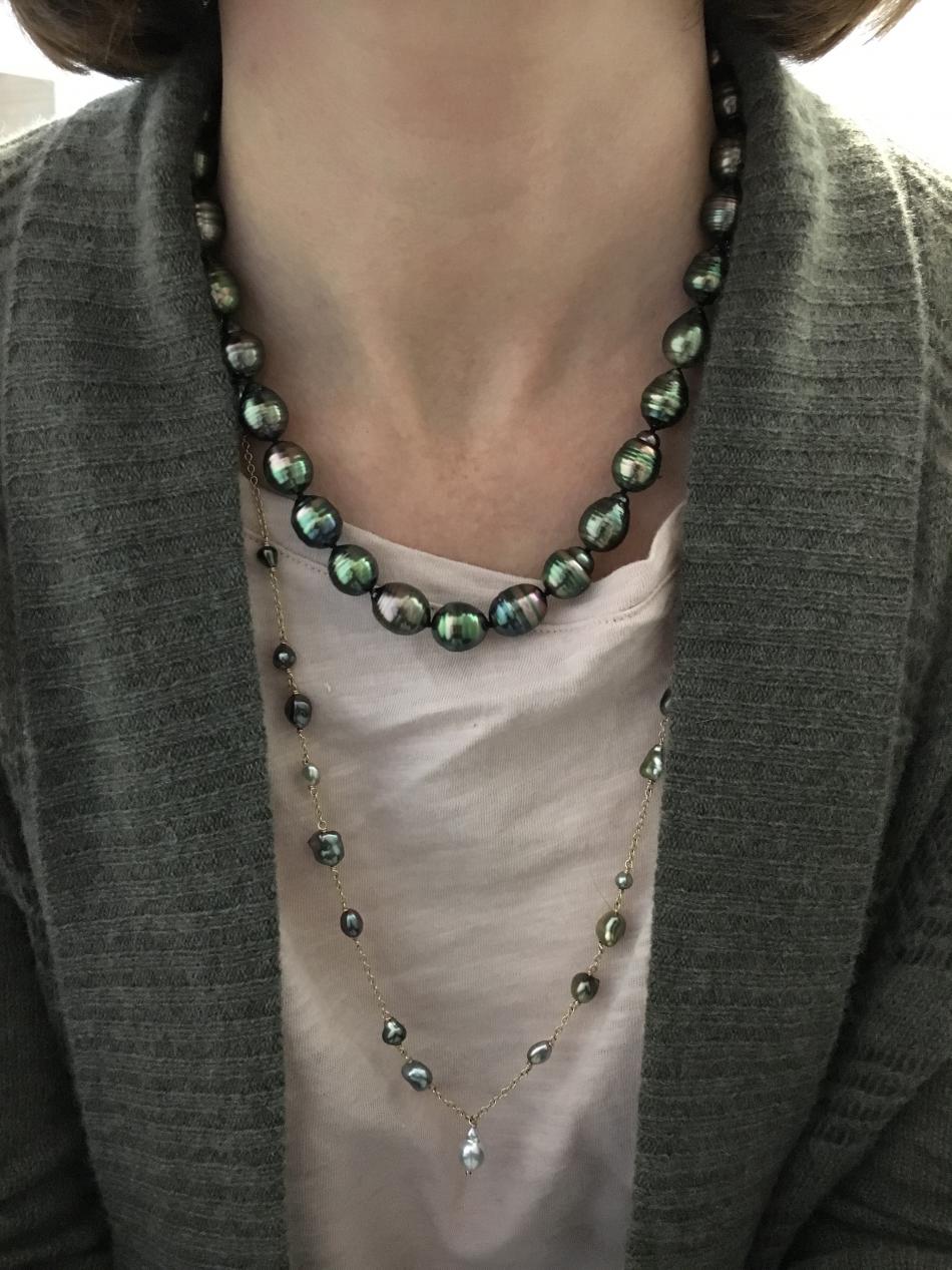 I also got the sweater in light grey, and it looked great with pearls, but the sleeves were an inch tighter than the purple and the turquoise, versions which I also bought. So the grey got sent back. The other sweaters I ordered (crown, dog, hearts) were all size M, and just that bit too tight, so they got sent back, too.