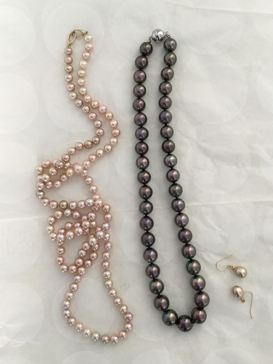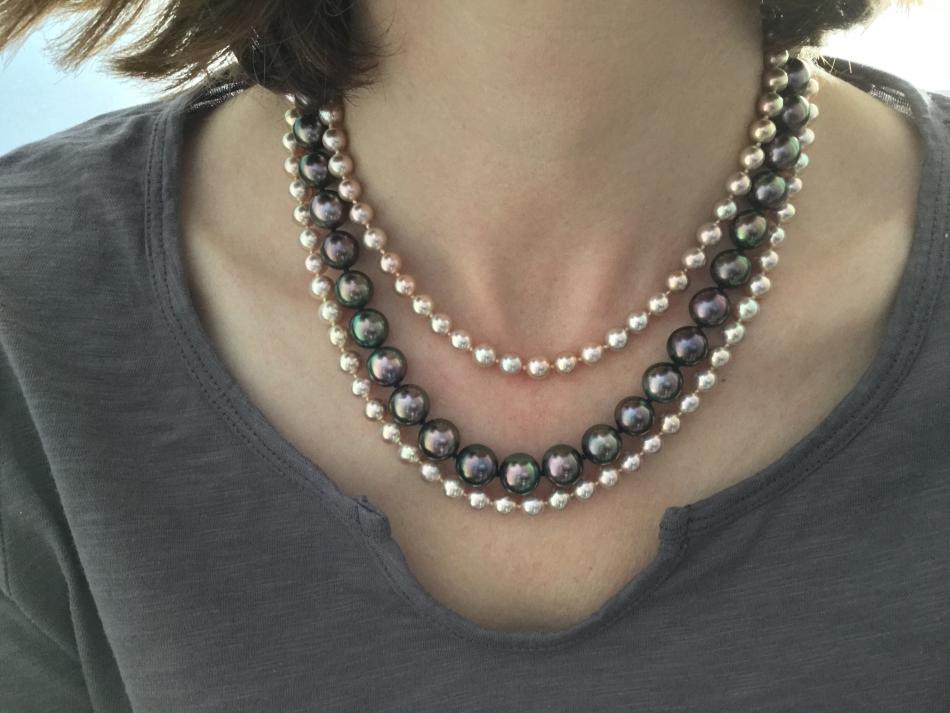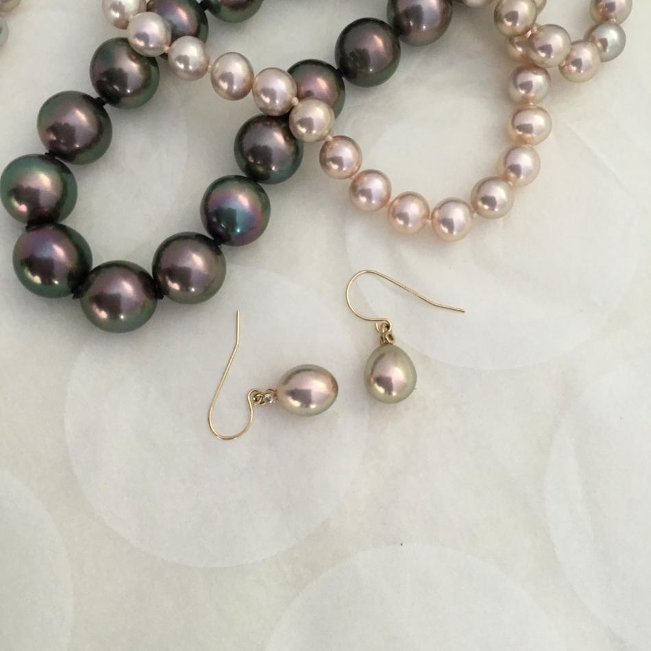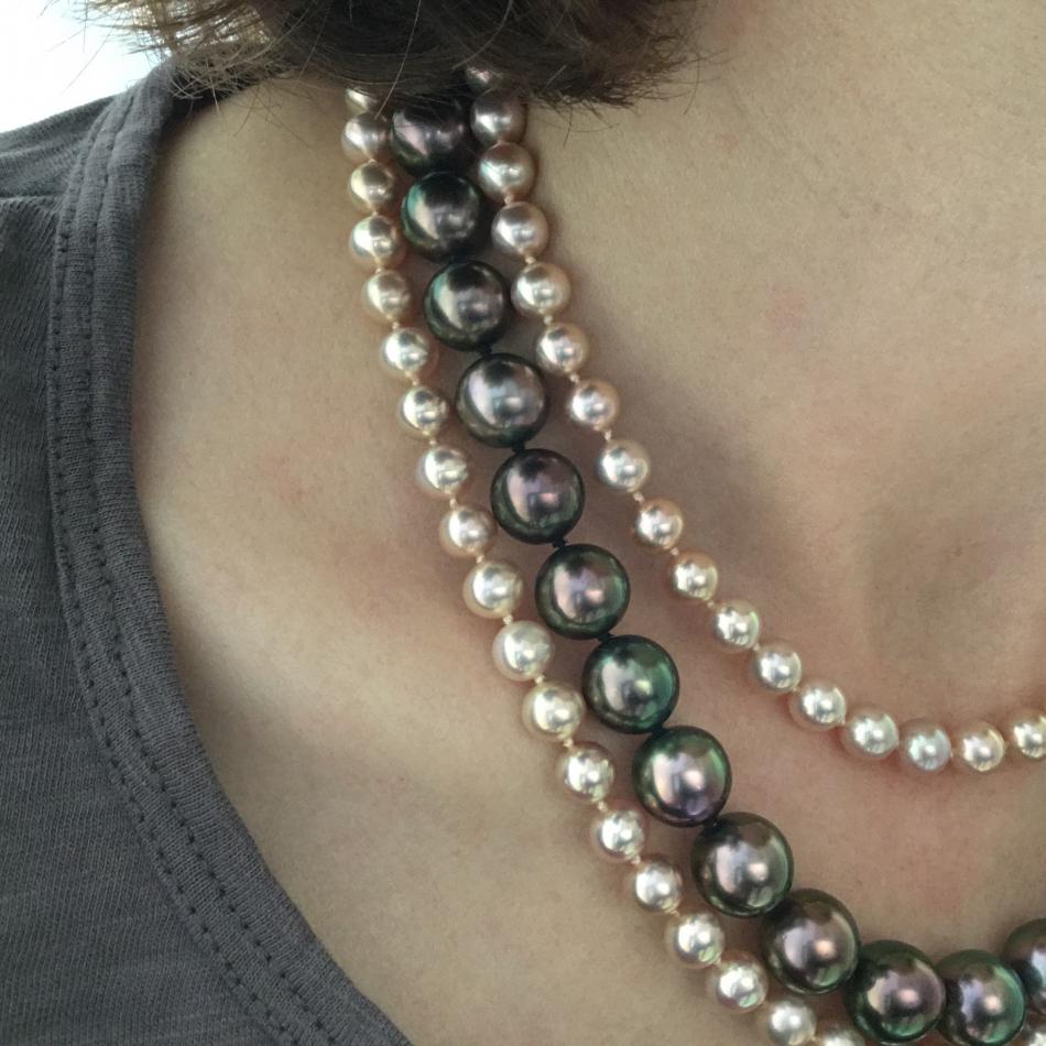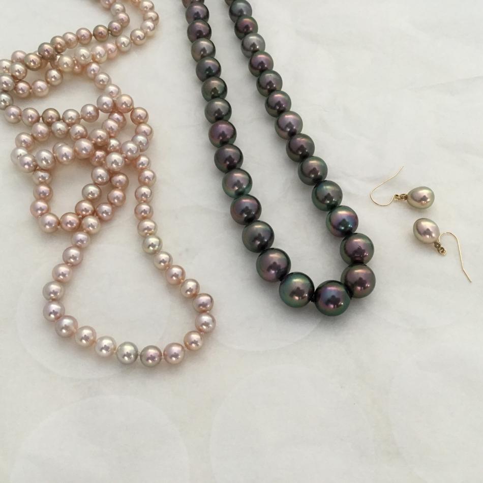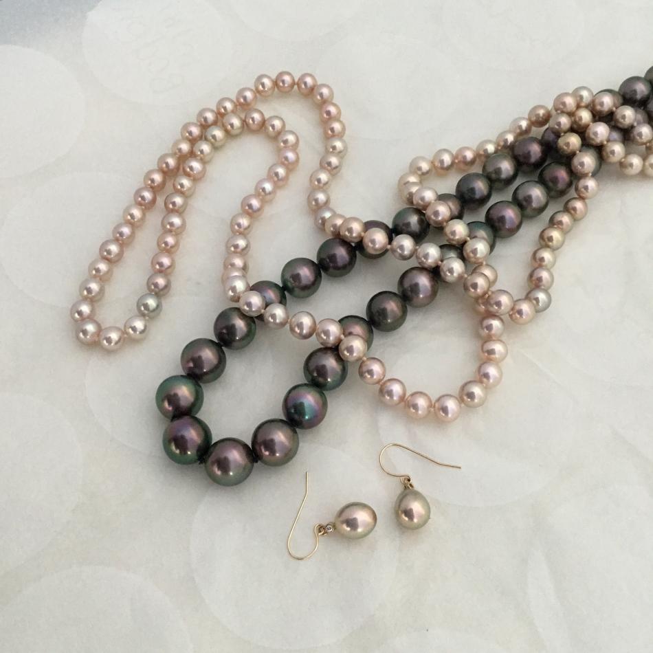 Metallic freshwater rope from Pearl Paradise, Tahitian necklace and metallic freshwater drops.