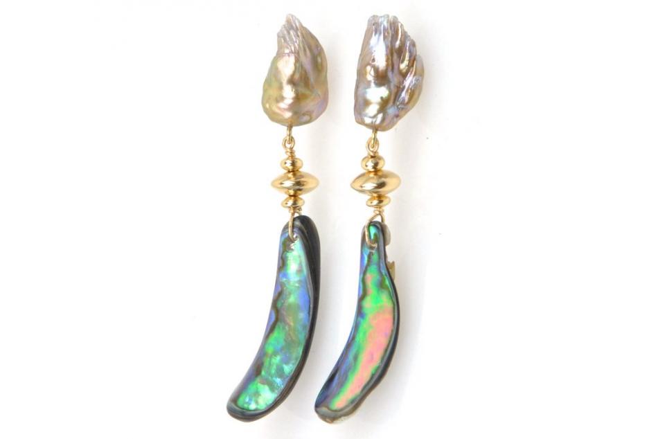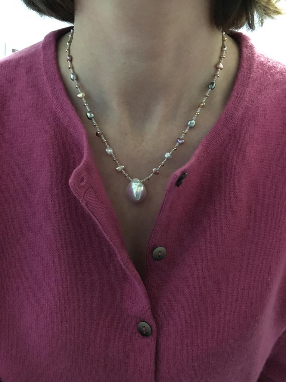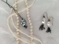 And finally with a Tahitian Keshi pendant from Kojima Pearl and freshwater Keshi dangles also from Kojima Pearl.