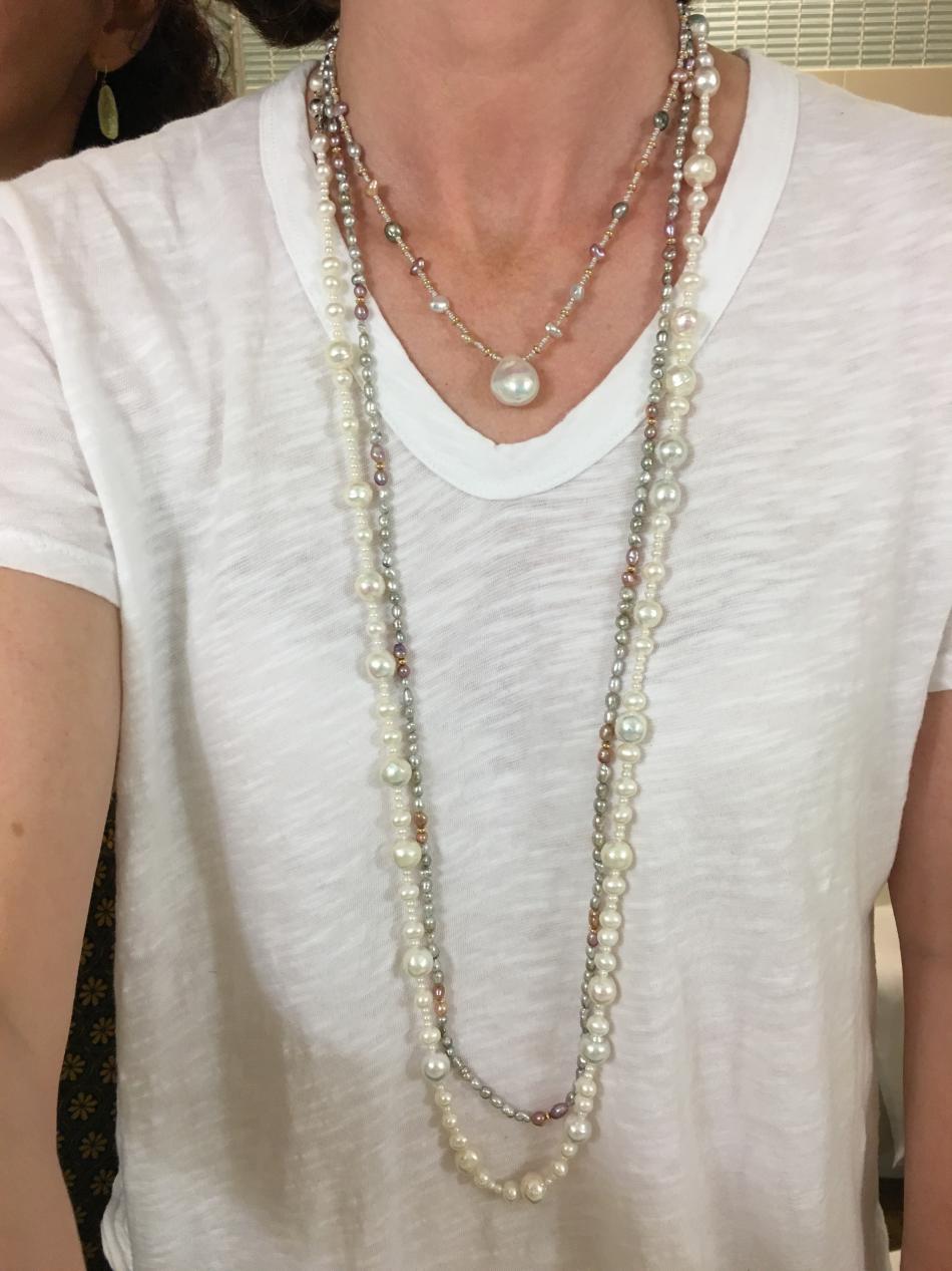 I got a Waterfall Light too and kind of wish it was a bit longer like yours. Maybe I'll try to add some extra pearls myself, but I do love how easy it is to wear, especially right now with this steamy weather!