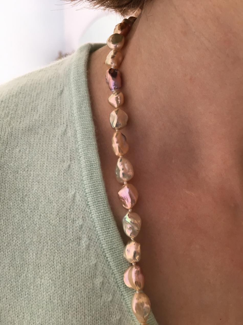 I'm still kicking myself that I didn't get a strand of these. They are gorgeous. But I had just bought my first blue baroque akoyas and I was a bit underwhelmed, and I thought the white ones would be the same. Of course, now I'm blue crazy.