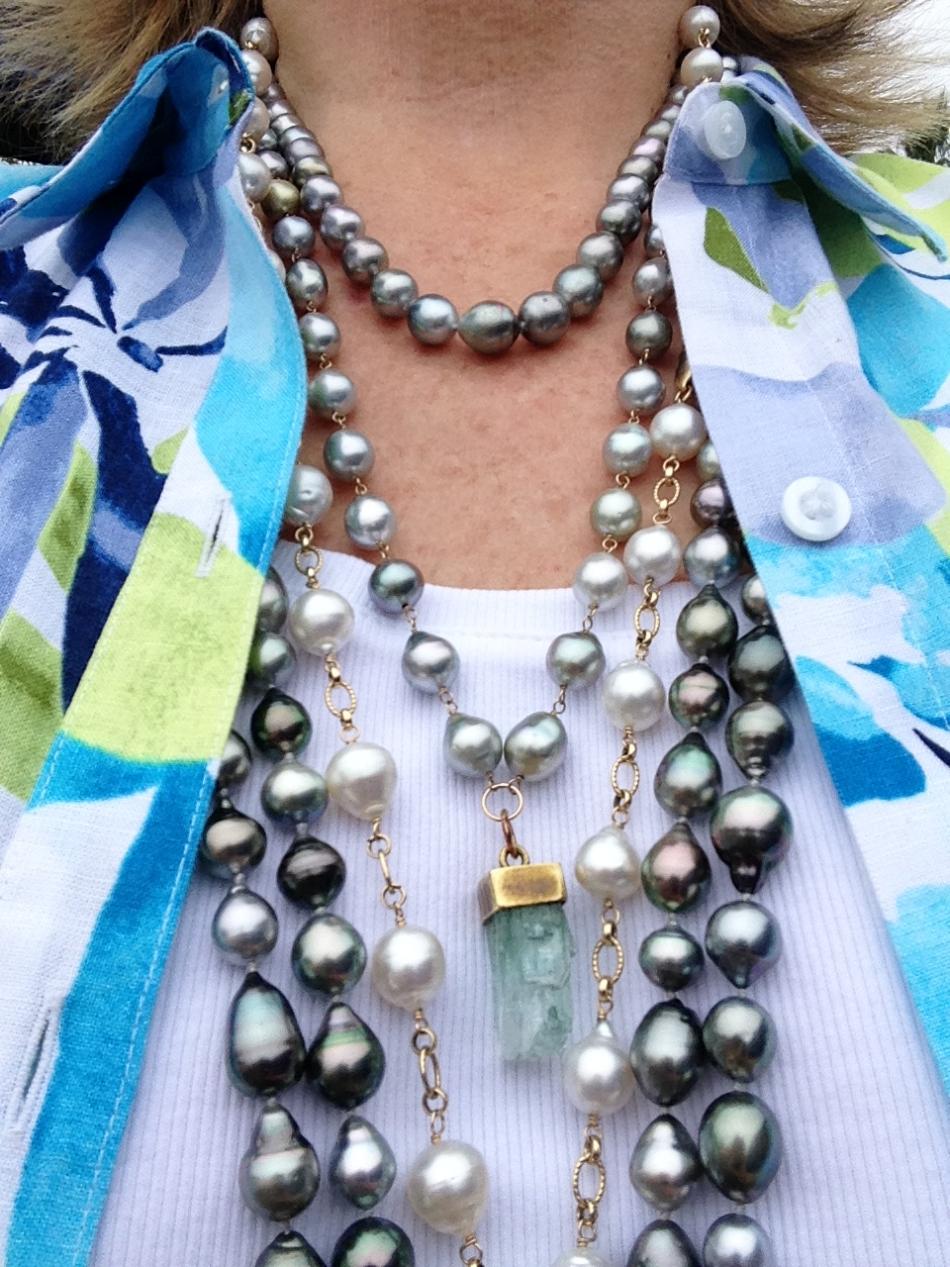 I really had no intention to wear all of them at once. Where else can you pile on the pearls and not worry you might be over doing it than a visit to the best vault in town? Pearl Paradise of course