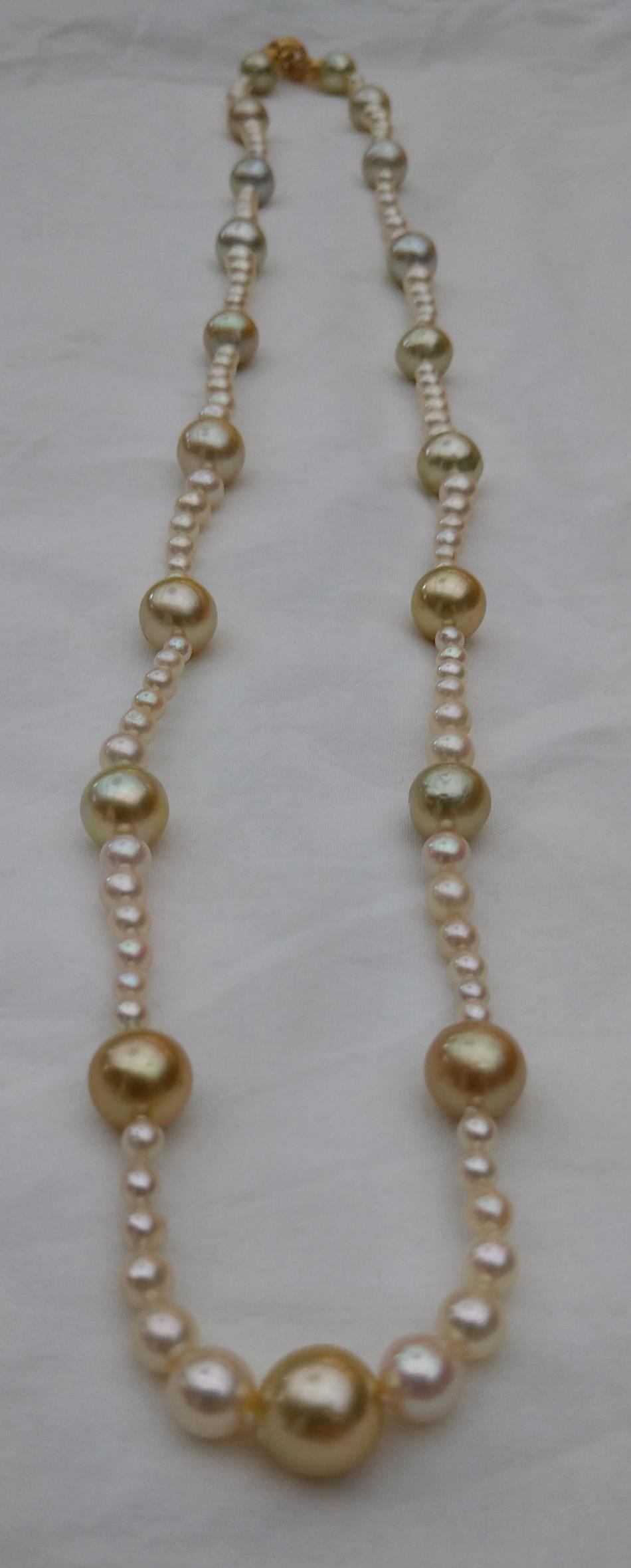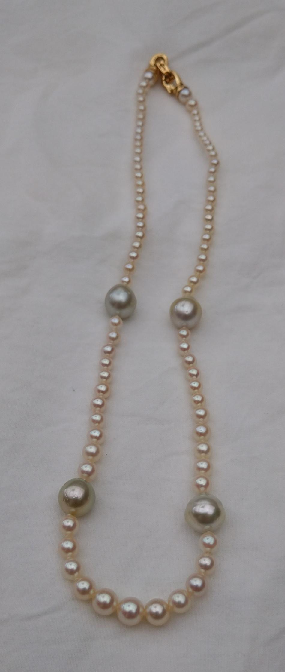 The added four south sea pearls makes the vintage akoya strand less formal. It's great for layering and can be attatched to most of my strands creating a rope.