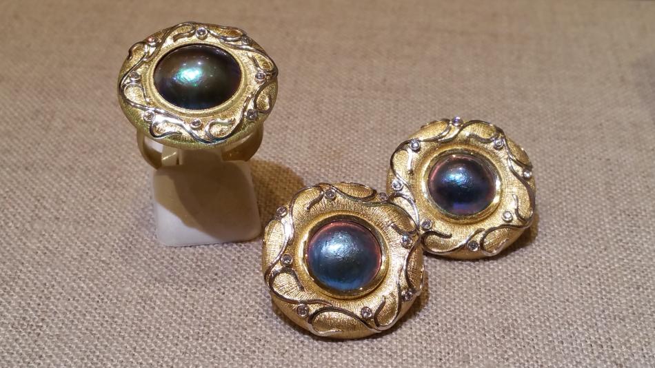 To-die-for earrings and ring with colorful pearls.