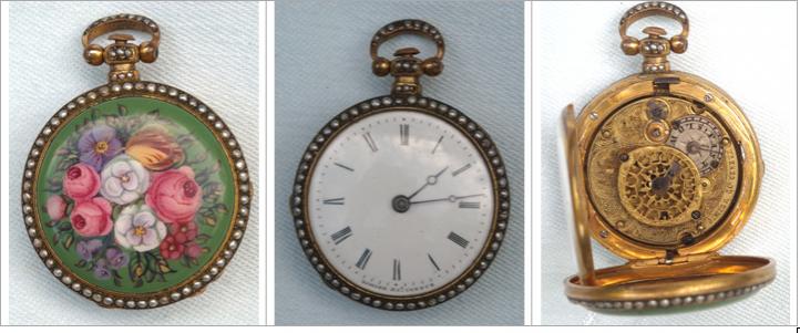 The memorial rings, brooches and pocket watches ringed with pearls seen in the 1700's still remained in fashion through the first half of the 1800's. However a particular variation on the pearl ringed pocket watch is worthy of mention.