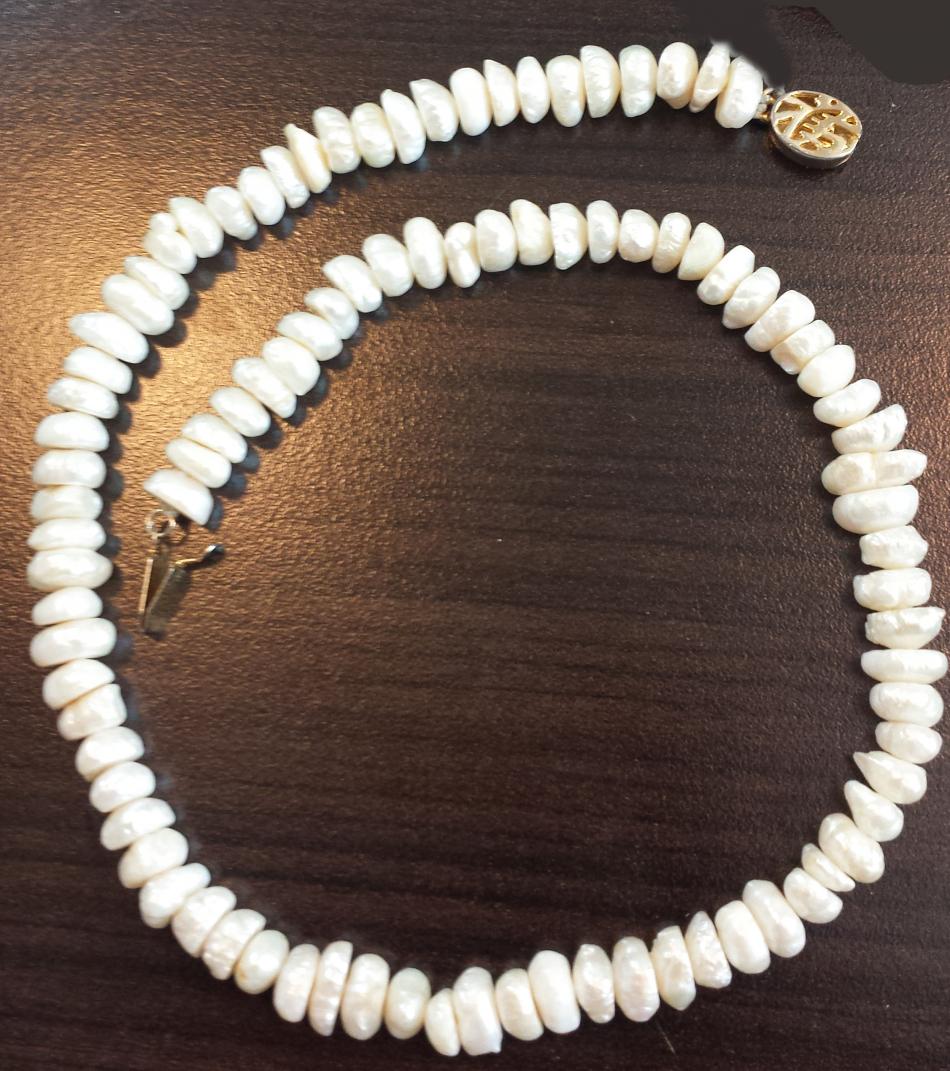 Now and then in my gem and jewellery appraisal biz, I encounter a unique piece. Today, a lady in her late '80's brought me a keshi necklace to appraise. She received it from a Burmese friend in the 1960's and was told that it indeed originated in Burma. With the keshi on the larger side with an average size of 9.1 mm, it seems to me that the pearls are likely South Sea keshi (?).