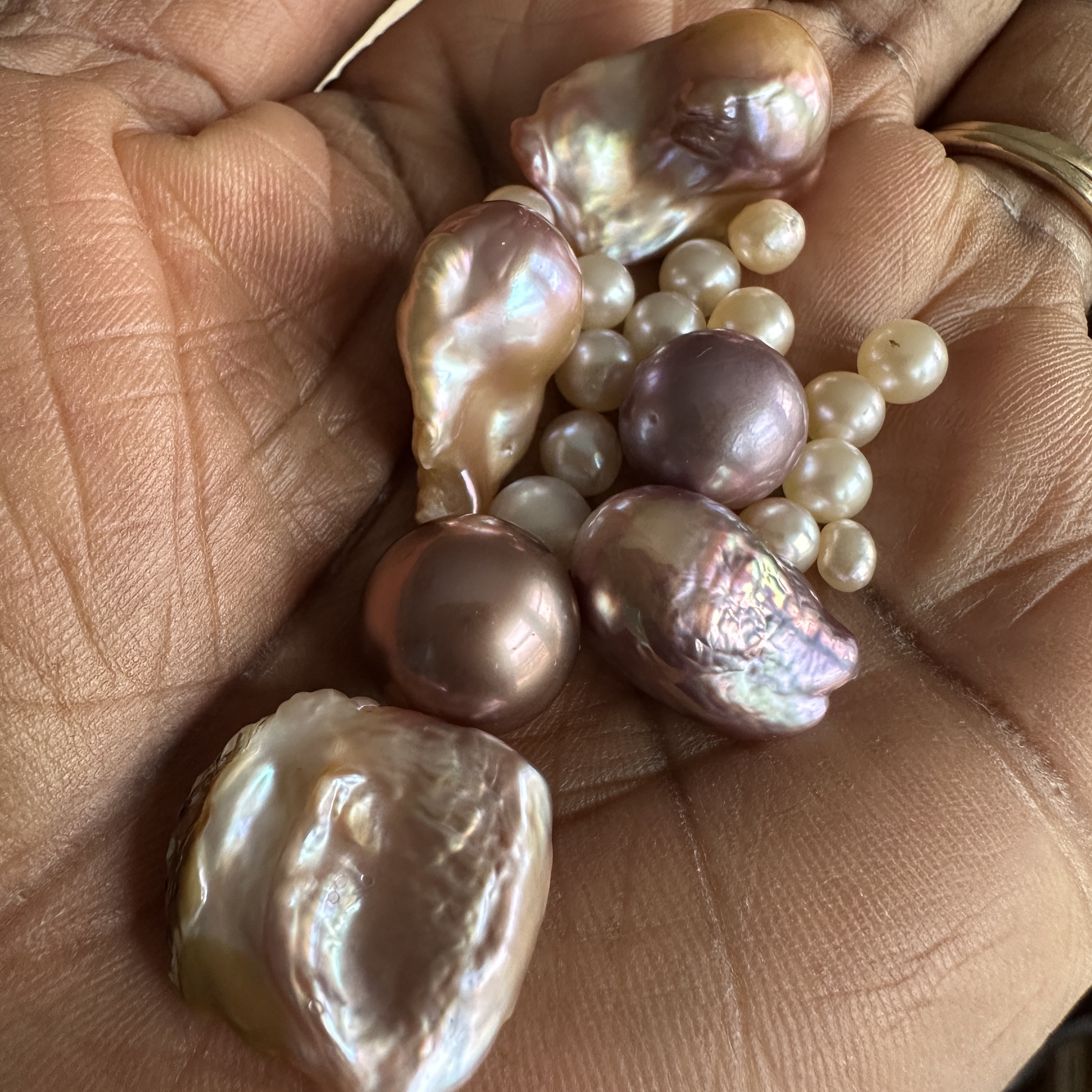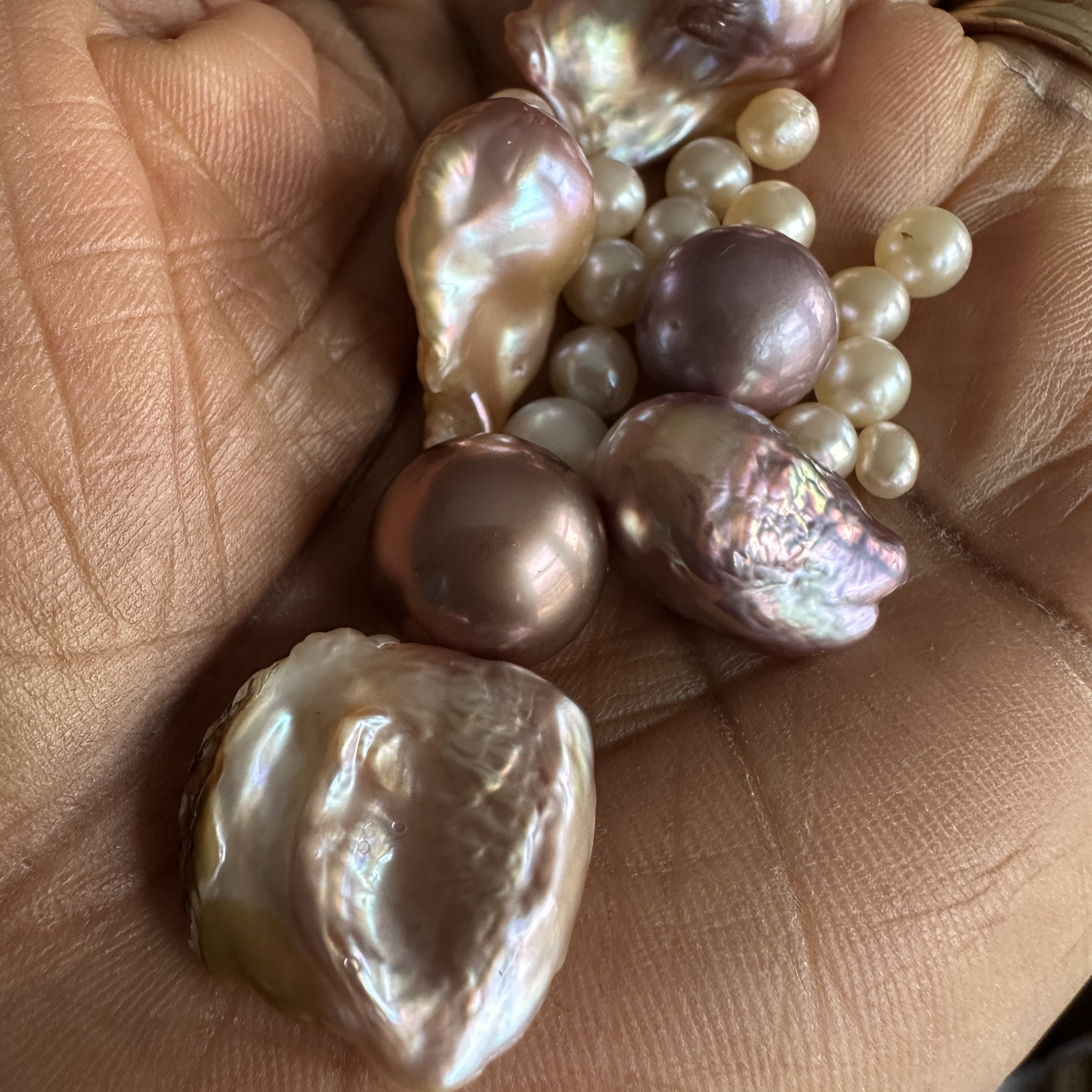 These are all natural colors of the pearls as I watched them get harvested from the shells/clam. Now, I’ve seen some forums about the fake pearl party where colorful pearls are placed inside the shell and made to seem like they are real but these don’t seem like those. I could share a video of one such clam opening just to get insight if they are fake pearls placed into the clams prior…that is if I’m allowed to share videos here.