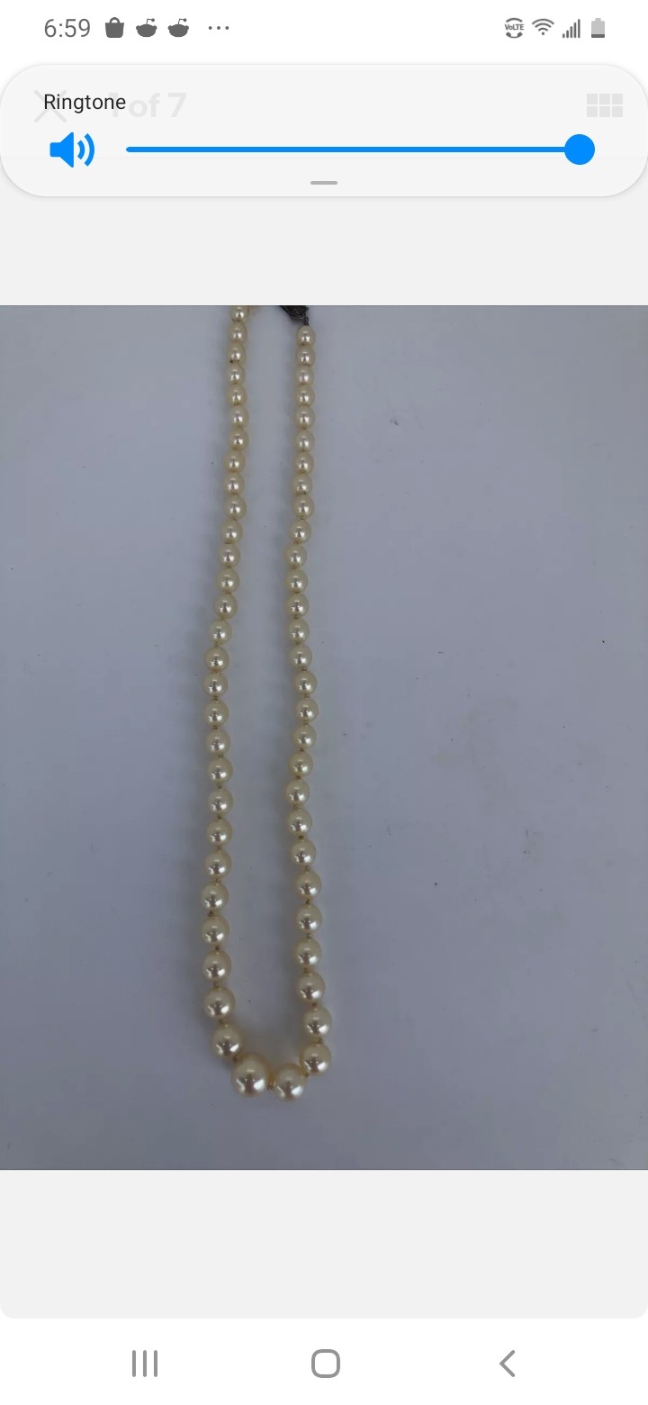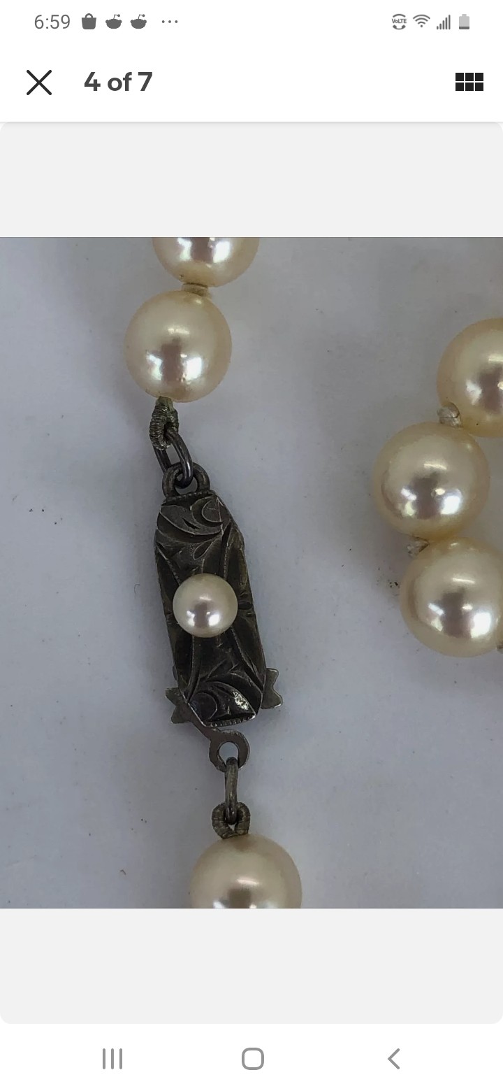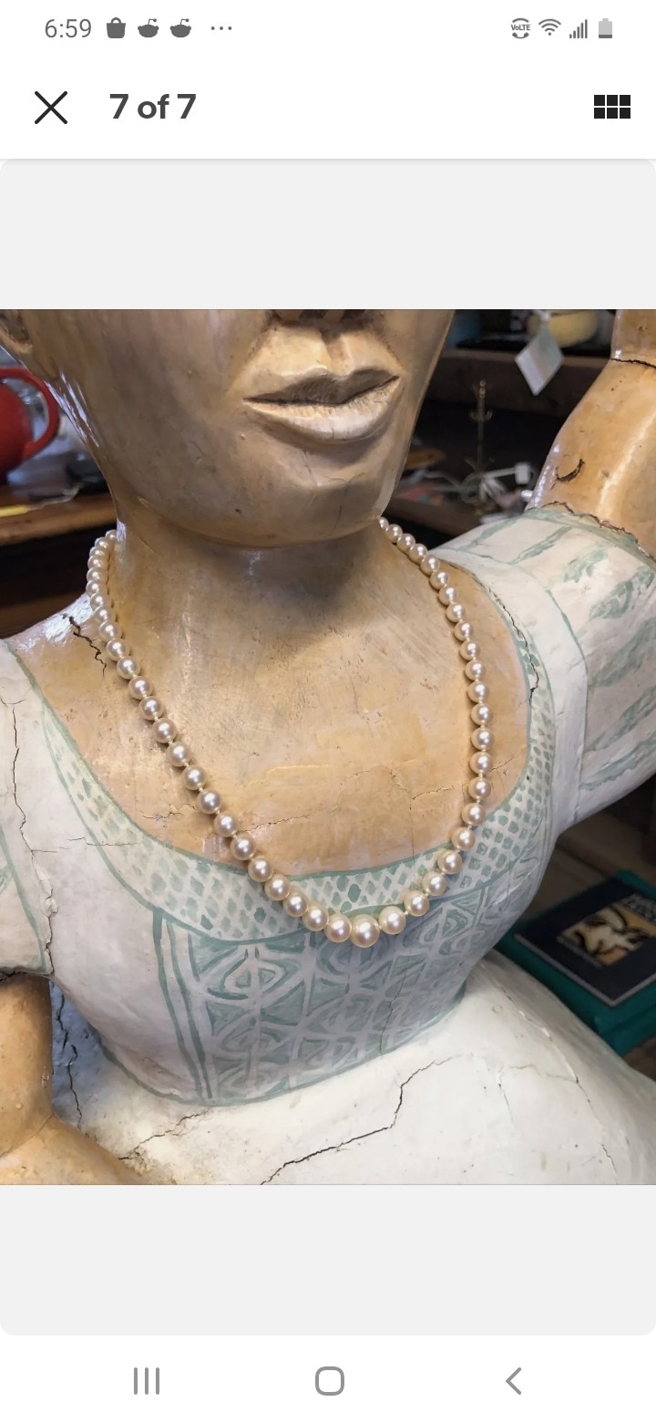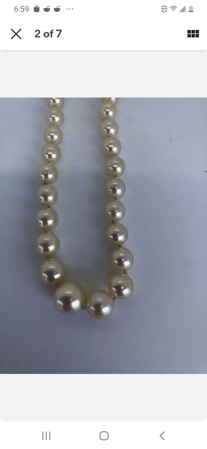 Well, bought these on Saturday, to celebrate a week gone by since I had a thief steal my purse, which had my latest strand inside, and it was totally an impulse buy, rebound Pearl's, if you will, lol! So here's the seller's pics, and I'll post mine after they arrive, unless I have to return them for any reason(fake!) I have had to return 3 to Ebay and 1 to poshmark, I am convinced that some people have faux and cultured and natural all mixed up! Sill and all I've purchased about 7 or 8 that were the real deal, so my percentage of keepers outweighs the duds. So here's some pics!