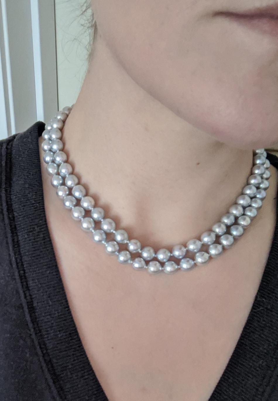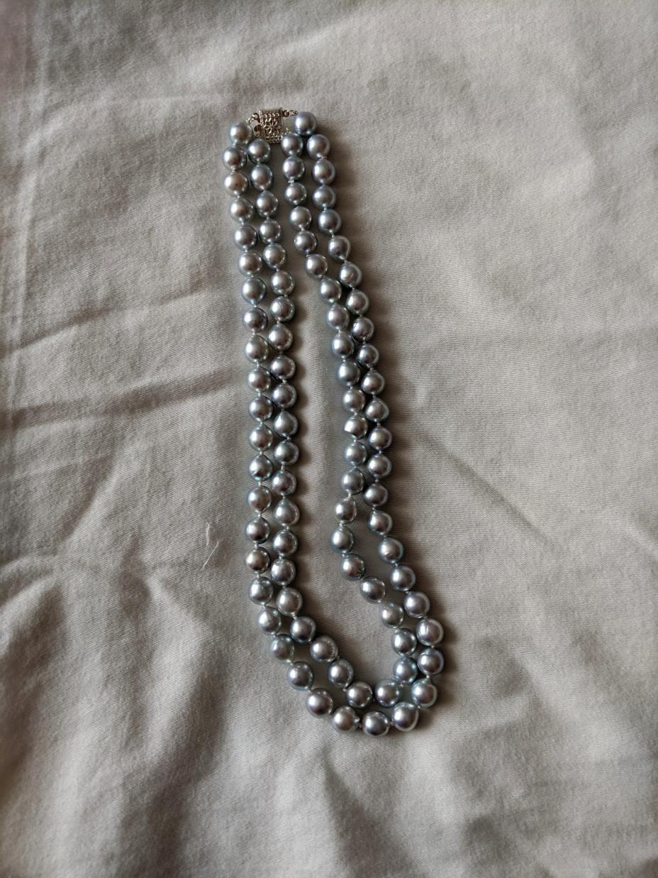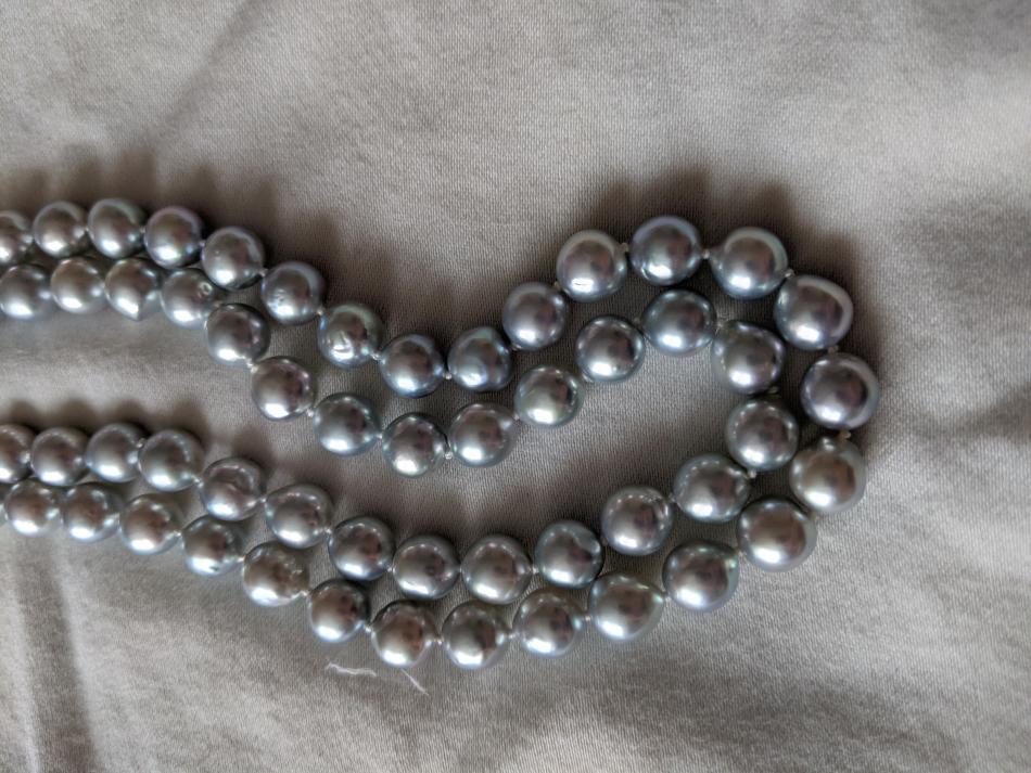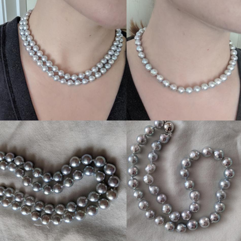 The pearl bug has bitten me hard! After buying a lovely, classic white akoya strand from PP (with help from the PG family), and then the "Periwinkle Perfection" strand and earrings set from the PP tahitian sale (ok, that was a vday gift), I'm now looking for a naturally blue strand. Madama strands are waaaay outside of budget, and it seems there wasn't much "blue" around in HK recently, so I was looking at PP's selection of silver blue baroque akoya strands. With thanks to Kacie at PP, I asked the team there to take pics of the most lustrous/bluest strand they could find in either 8.5-9mm or 9-9.5mm. The pictured strand was the bluest. What do you all think about it? I really appreciate your more expert eyes since I'm still fairly new to the pearl hunt. I also remember reading that smaller sizes tended to be bluer- should I ask them to find the two bluest smaller mm strands and perhaps make a double strand? I don't like smaller than 8mm on me but if doubled, smaller might be ok.