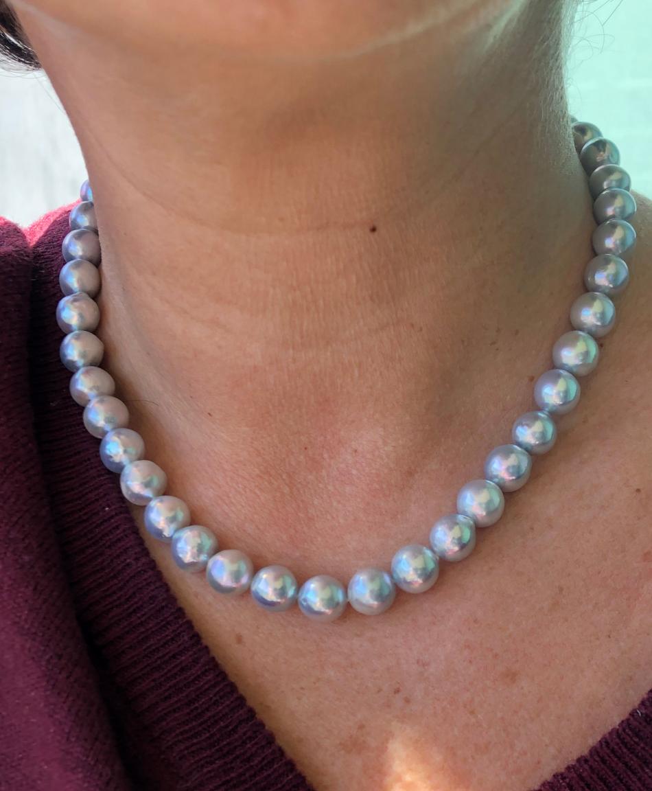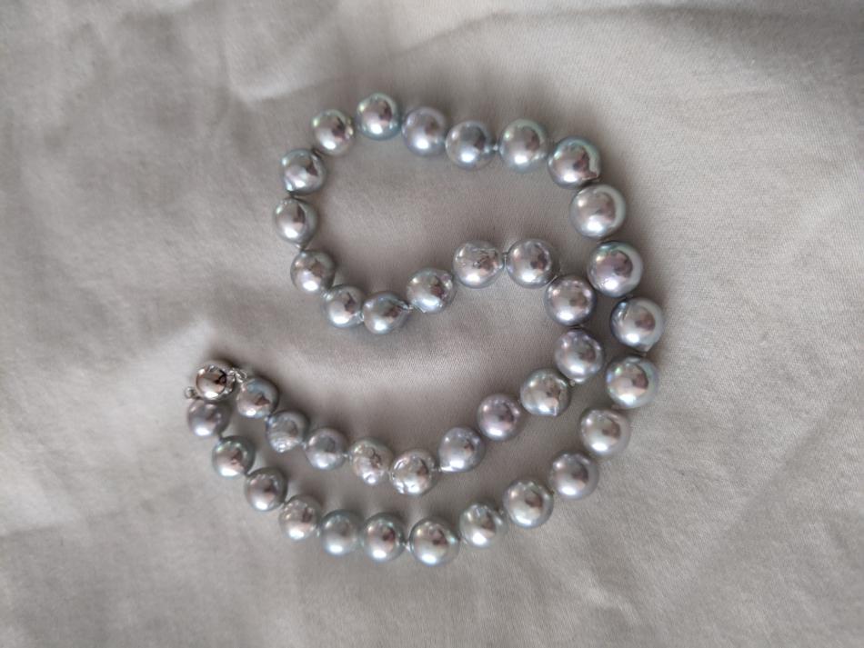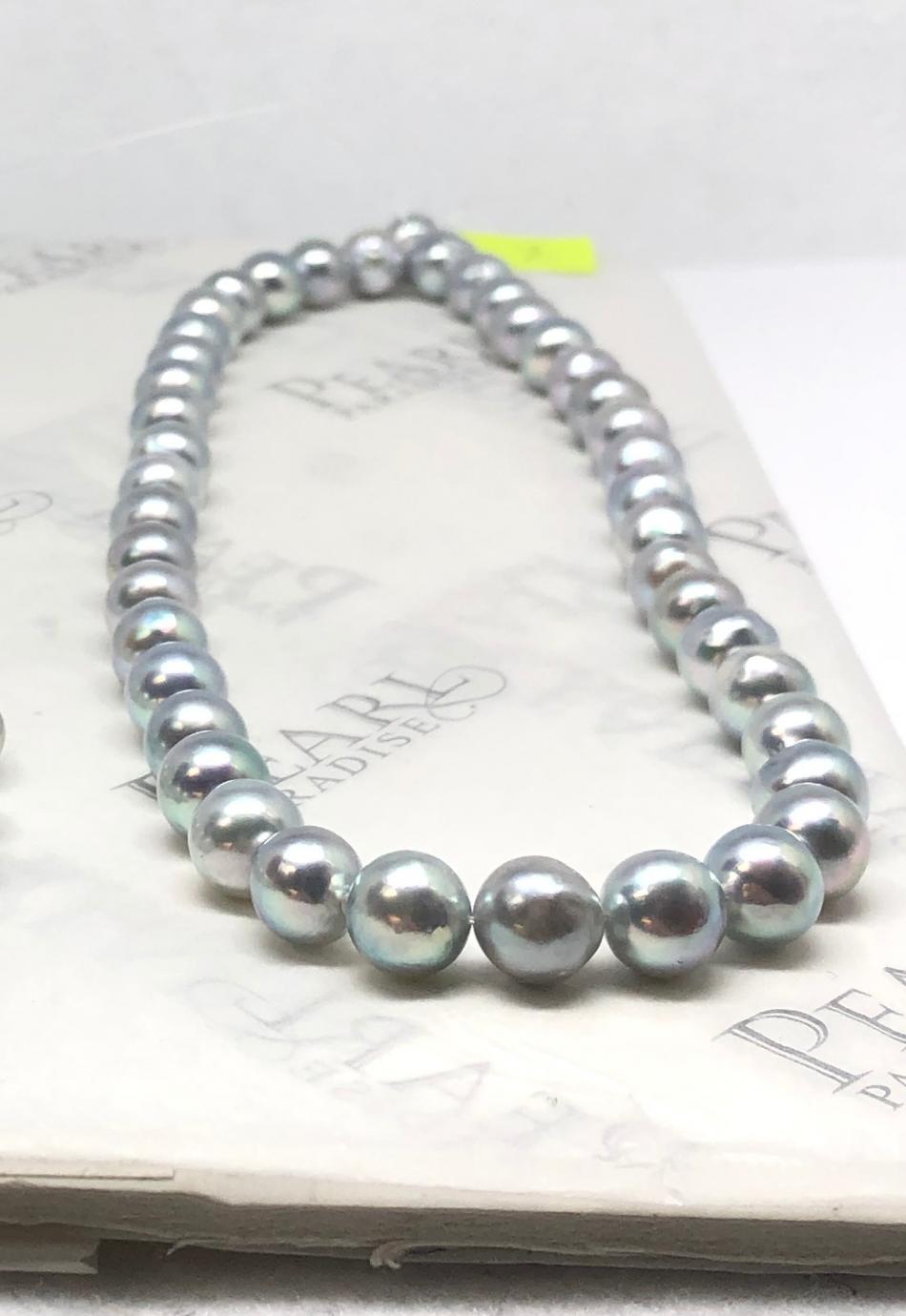 The pearl bug has bitten me hard! After buying a lovely, classic white akoya strand from PP (with help from the PG family), and then the "Periwinkle Perfection" strand and earrings set from the PP tahitian sale (ok, that was a vday gift), I'm now looking for a naturally blue strand. Madama strands are waaaay outside of budget, and it seems there wasn't much "blue" around in HK recently, so I was looking at PP's selection of silver blue baroque akoya strands. With thanks to Kacie at PP, I asked the team there to take pics of the most lustrous/bluest strand they could find in either 8.5-9mm or 9-9.5mm. The pictured strand was the bluest. What do you all think about it? I really appreciate your more expert eyes since I'm still fairly new to the pearl hunt. I also remember reading that smaller sizes tended to be bluer- should I ask them to find the two bluest smaller mm strands and perhaps make a double strand? I don't like smaller than 8mm on me but if doubled, smaller might be ok.