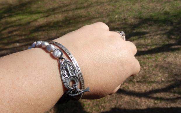 First, I have to say there's a baroque Tahitian strand on PP that I really, really want. Pout. Although they're on sale and extremely affordable, I can't really justify it. So, I reminded myself that I have these for now and took the opportunity to fix them up a bit. I removed the largest pearl because it was a total dud, added some smaller ones that came with the strand as extras, rearranged them all a bit, changed the clasp from a hollow ball to a hammered toggle that I antiqued with liver of sulfer, and of course added the connector charm. The wooden necklace form was a gift from my thoughtful husband.