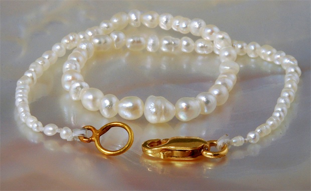 Caitlin, I'll present your post to her with the bracelet. Amazing, it does look like a strand without knowledge of the proportions. Center pearl is just under 5mm. It's a new piece made by Agustus Collection from pearls found by free divers over a period of 'many years.' Certified by the Gem & Pearl Testing Laboratory of Bahrain. Agustus had been offering it since early March, I guess the small pearl size put off most folks but we'll be glad to have it.That's a bracelet?