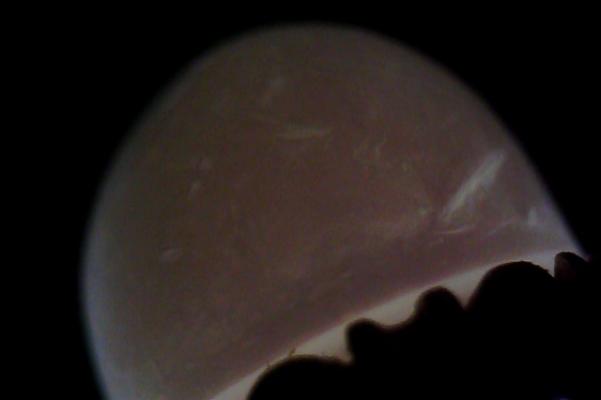 I have been candling most of the day, naturals, hopefuls and known cultured SS pearls to try to get a feel for them but results are still mixed and confusing. But only one I am sure is a natural SS pearl looks like this large pearl. I still feel there is a chance it is natural and would appreciated your opinion. I do feel that the photos I took of this pearl were of a very good at the least. I have tried taking more of it but results are virtually the same.