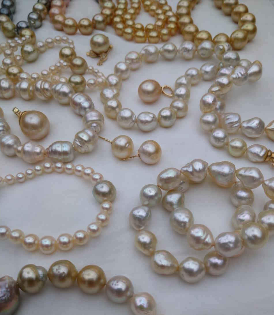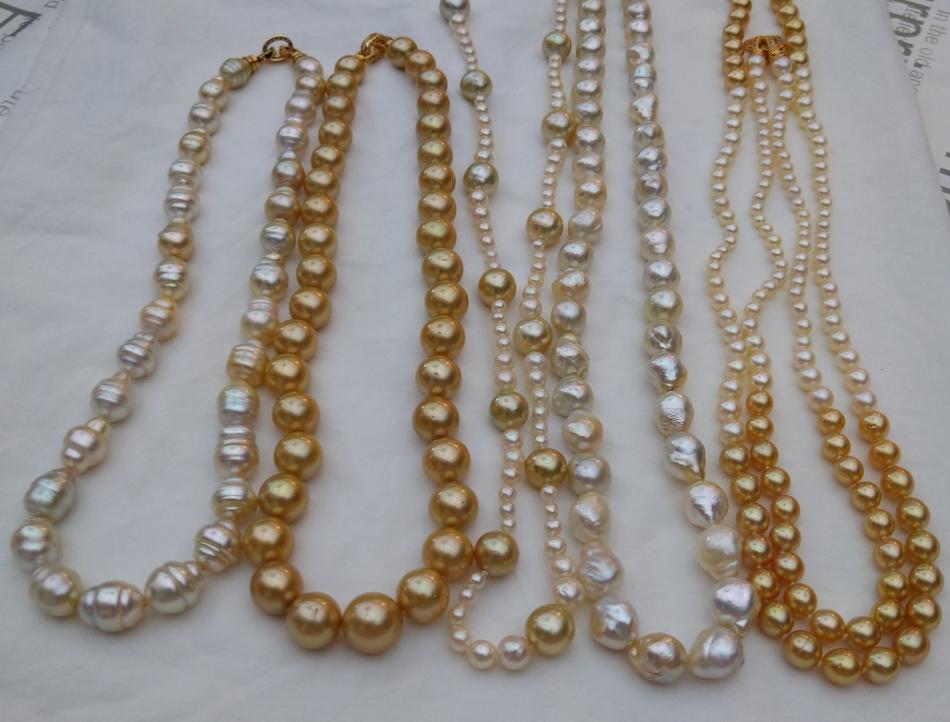 The champagne south sea studs from Tahitipearldesigner goes better with this baroque light golden south sea and vintage akoya strand.