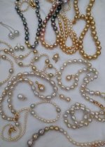 There are to many pieces to add a description of every one of these. Ask if you want to know the specifics of any one of them. After seeing them all together I still have a suspicion that I lack the medium colored pearls. Mostly they look light or dark. The quest continues, all in the name of science...