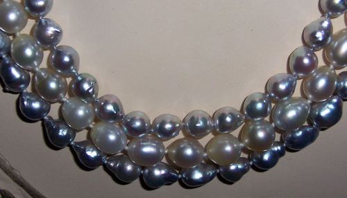 3) The bottom stand is Akoya baroque nature colored from a vendor in China that I have bought a couple things from this past year. These pearls are larger than in (1) above, but with a more pronounced blue color.