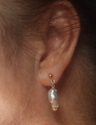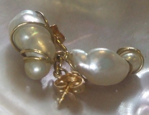Wow, those are some huge and lustrous baroques! I'd love to see them dangle. Hopefully someone will take a photo of one on your ear for us to gaze at with envy... Congratulations