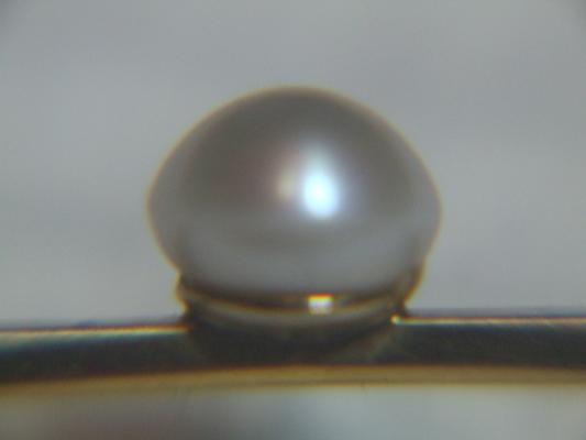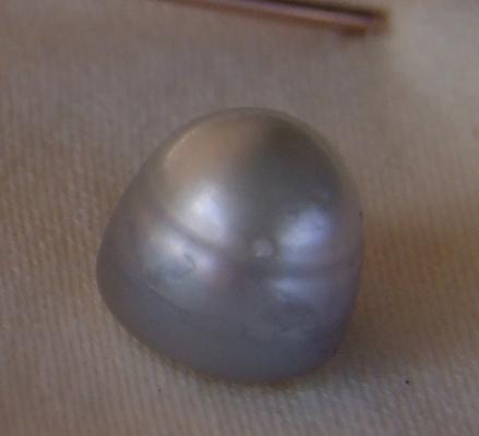 Next a Brooch, Tie Pin or whatever one calls these. It is a big White Natural Pearl measuring 8.46 x 7.74mm deep app. I believe this is natural & possibly a River Tay Pearl as I have one very similar although smaller which I bought for a small fortune and some paperwork came with from a Scottish store - just information but unfortunately when Barry took some photos for me he threw away the small paper with info on it. I also have another even smaller one I believe is a Tay too. But who knows, whatever it is a real stunner.