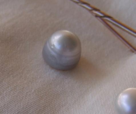 Next my white pearl which needs to be professionally peeled. It is 8.5mm wide. Can't check depth. I really love this one with all its flaws and warts