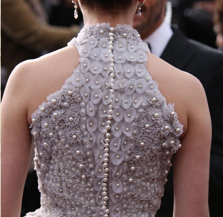 Jones' dress is stunning - the back reminds me of a certain type of lily ... I can't place the flower right now, but it's on the tip of my tongue!