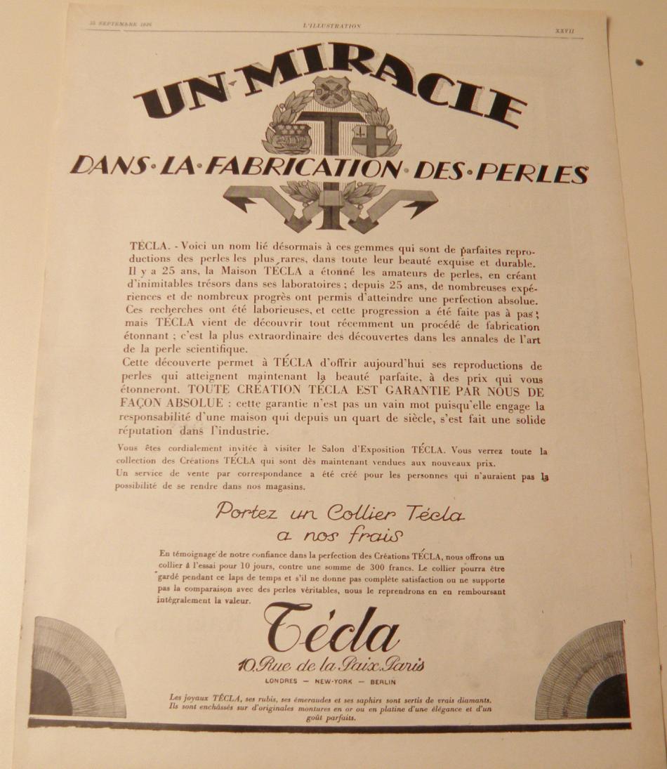 I have another add, from 1937, talking about pearls "directly from orient", and before the 30's, nothing specifically mentionning cultured pearls, only "scientific" "imitation" or "professor tecla" pearls.