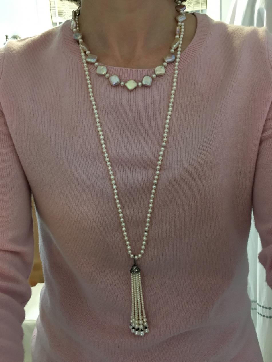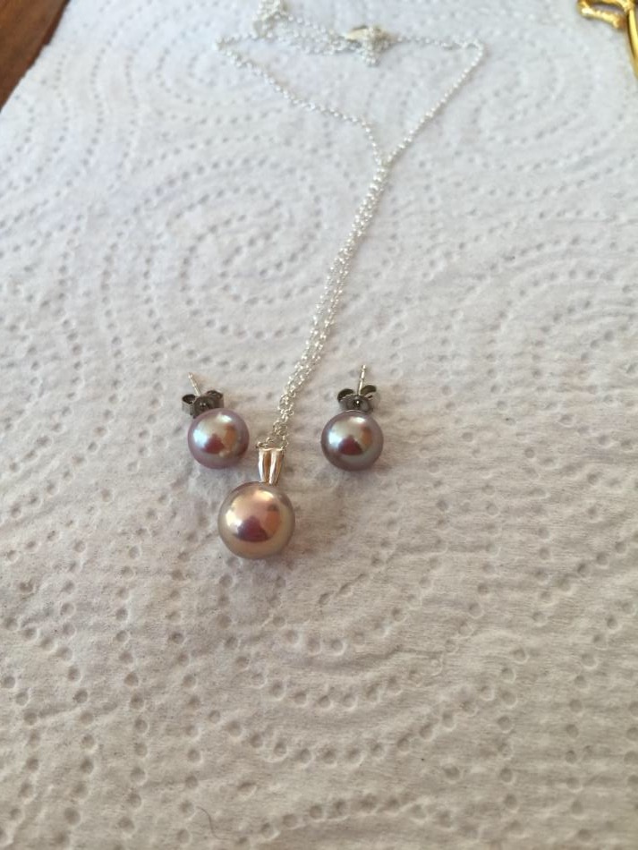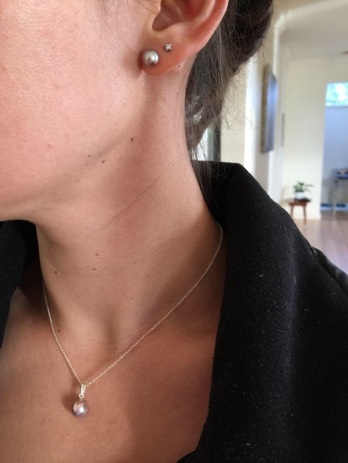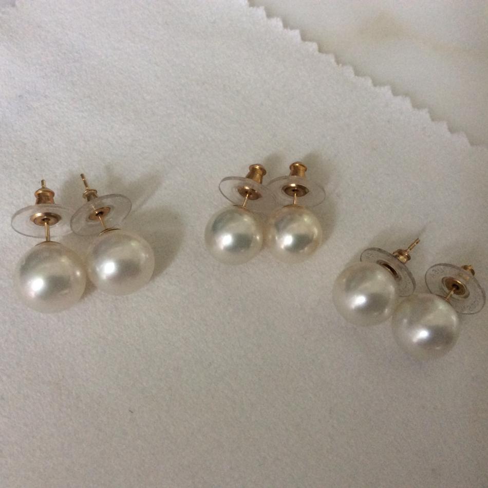 To honor pikinnew during pearl month, I'm wearing her white SS 13mm solitaire with my golden SS 13.5mm solitaire. This was my first purchase from PP in 2015. I just bought a pair of 10mm white Burmese SS studs, shown with 2 larger pair of white SS studs I've had for a couple years. I thought they had a nice luster, until I saw them side by side with the Burmese studs. Now I'm not sure I'll ever wear them again!