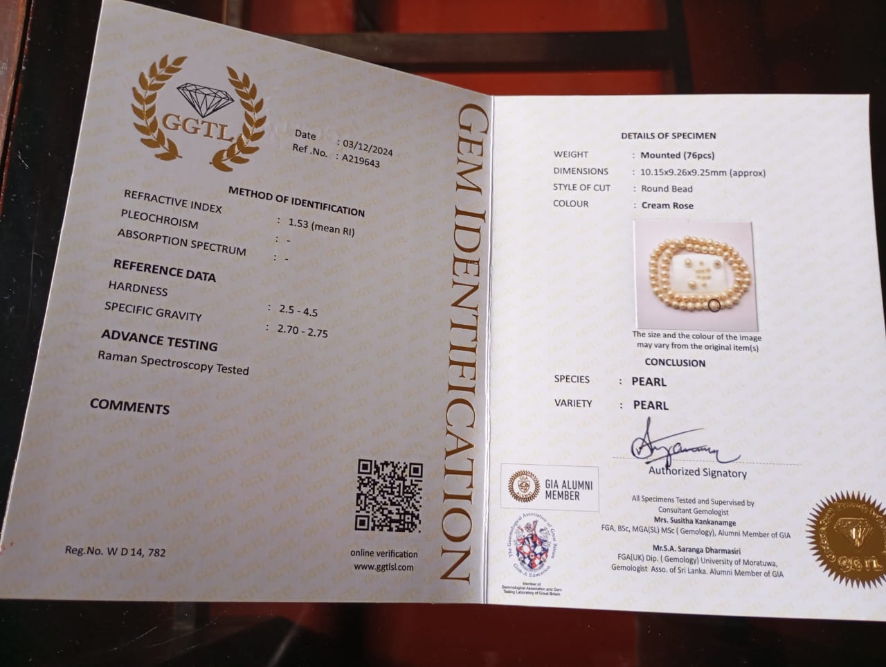 But unfortunately there is no facility to test pearls here in sri lanka.but they have done some tests. I will upload that test reports FYI.