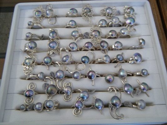 These are not ordinary pearls. Though they are a “black pearl” as the Tahitians are and there is some overlap in the amount of color between Tahitians and the Cortez pearls, the Cortez pearls have a high rate of almost abalone-like colored pearls, unlike the Tahitians do . OK, let’s say we can imagine they are ? Tahitian, ? abalone-like colored pearls in their best examples. The quality of the color does vary as it does in Tahitians. As it goes down, the pearls become more blue silvery, though the same colors are present, they are more subtle. Not as saturated.