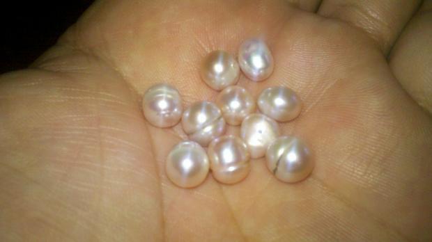 Cultured Chinese Freshwater Pearls (CFWP). Commercial grade, not jewelry grade. People try to sell them all over the world as local, natural pearls. A strand of those would cost a couple dollars at a bead show.