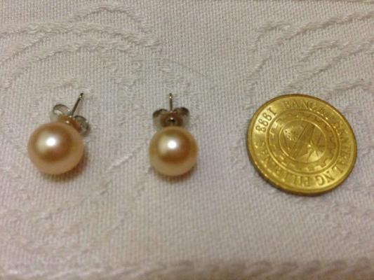 Here are three photos that may help in your evaluation. The pearls are all bought in the Philippines, and in one of them, I use the 25 centavo coin, as you did.