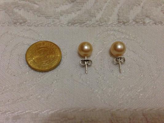 From what I can see in your photo, your pearls are pale-coloured, leaning toward peach. Plus, their size in proportion to the coin puts them at about 7mm, like my dyed gFWPs.