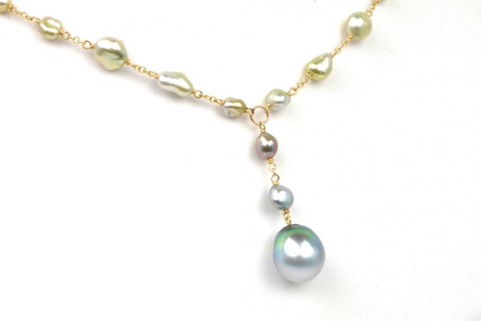 This was on my wish list for about 5 minutes after the morning PP drop. Then it was gone (sold!). A 35 inch Tahitian rope with rare, gorgeous aqua overtones. It really stood out next to the more common green Tahitian ropes.