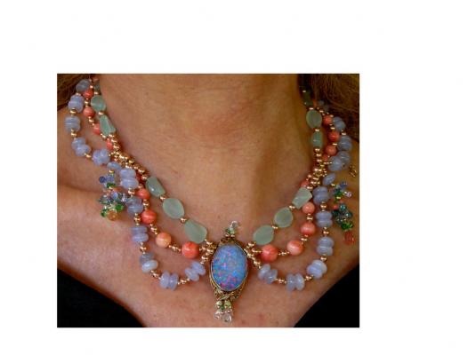 4. Third strand: I then added the gold wire to the central section—this added a third line of sapphires to the central necklace.