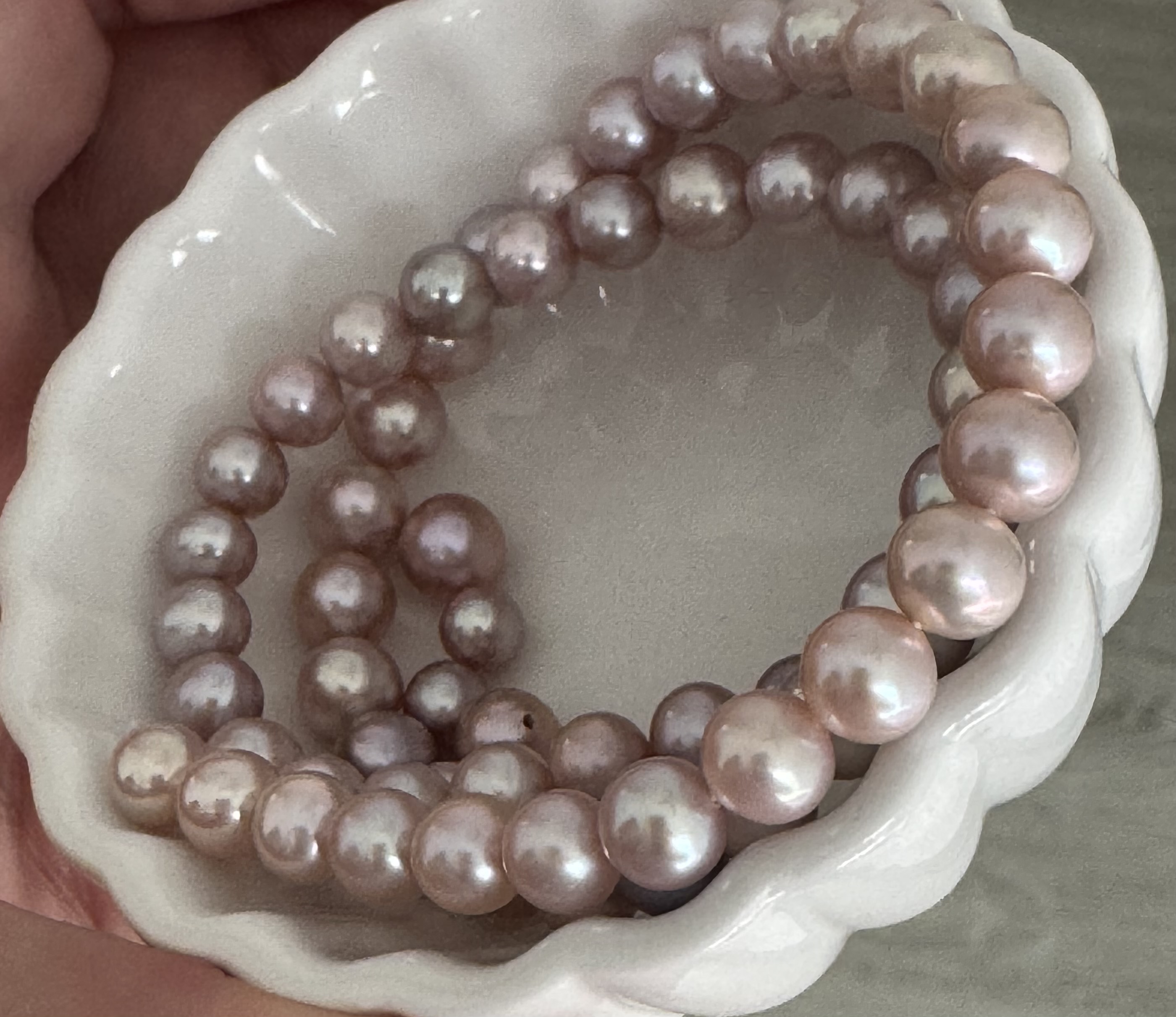 Besides, I can readily distinguish high quality objects which intrinsically display glow, high luster, brightness, delicacy although just yet I cannot discriminate the high quality fake pearls. You all were more than 100% right to recommend Pearlescent for people like me inexperienced in both online pearl shopping and authenticity & color evaluation.