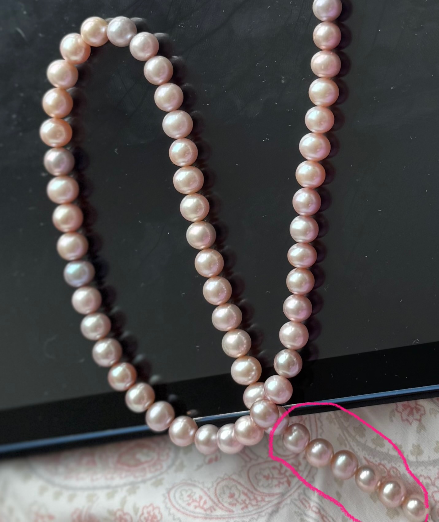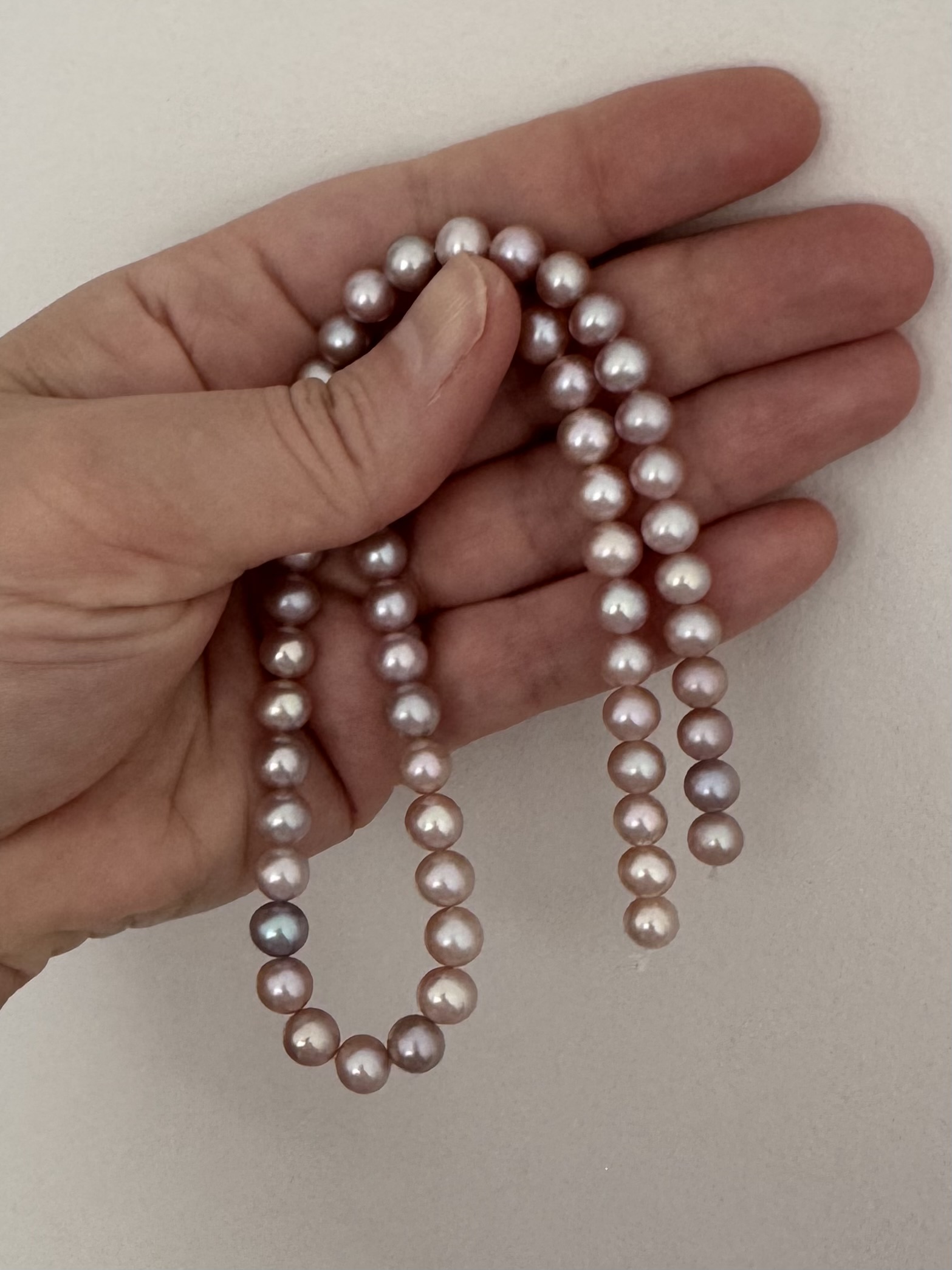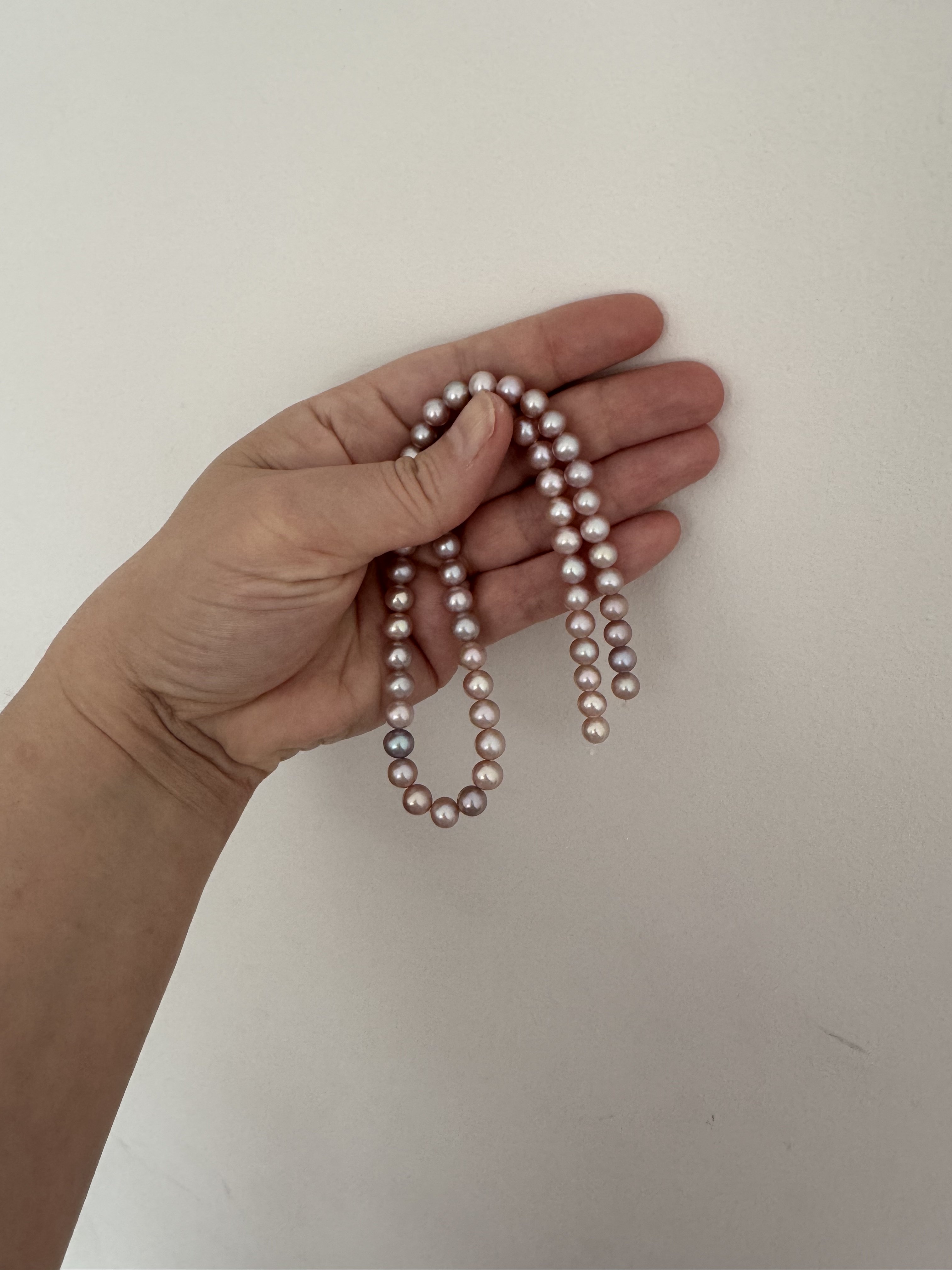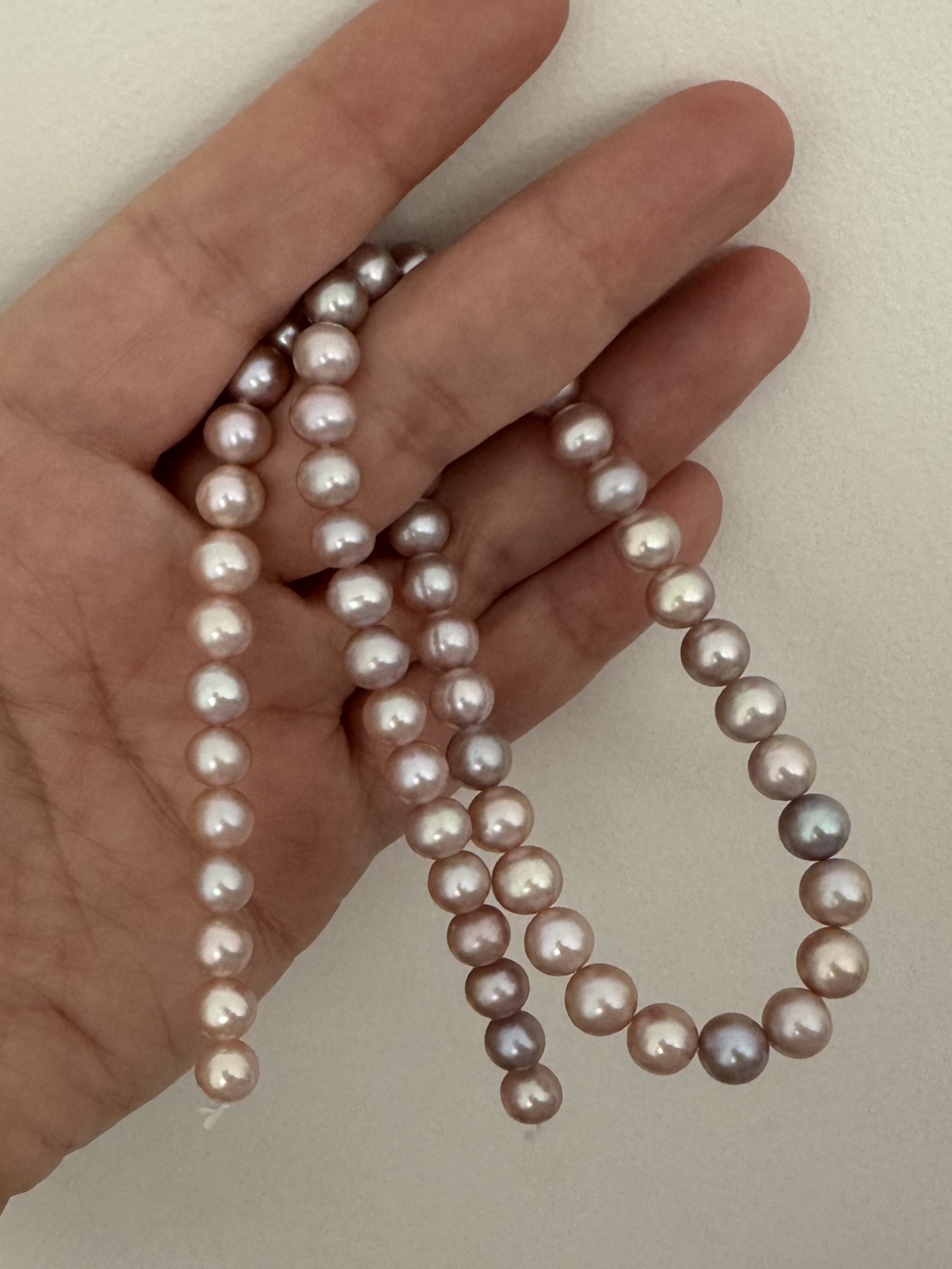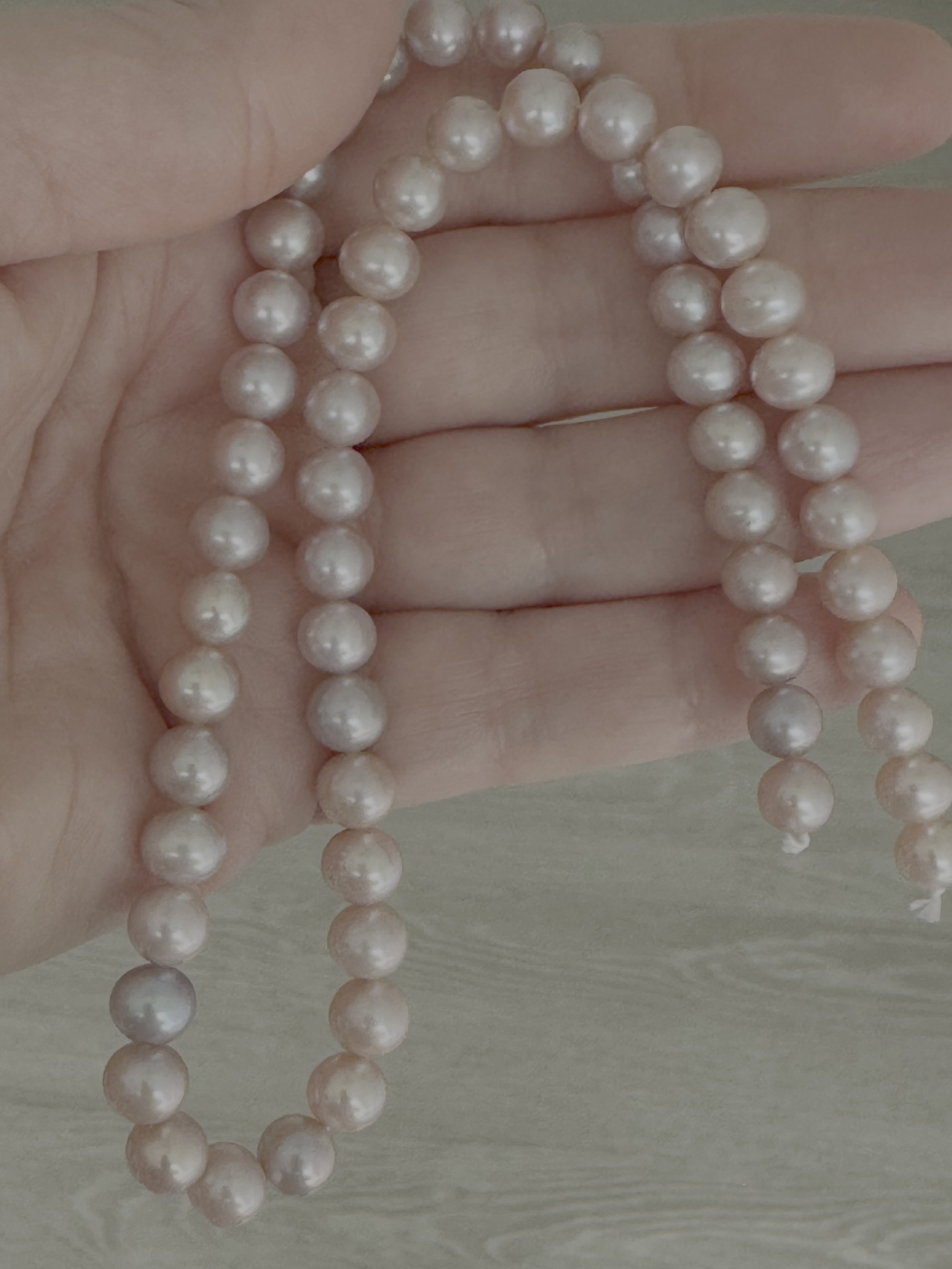 Great explanationHi, if you are able to change the phone screen settings, what helps me is what sellers use to achieve unrealistic saturated colors. I have a 7-8” long light specifically with bright white light. It has magnet inbuilt, is easily switched from hand-held to wall-attach. I bought it 1,5 years ago not for pearls, for silk and gold embroidery. That small lamp makes a great difference.
