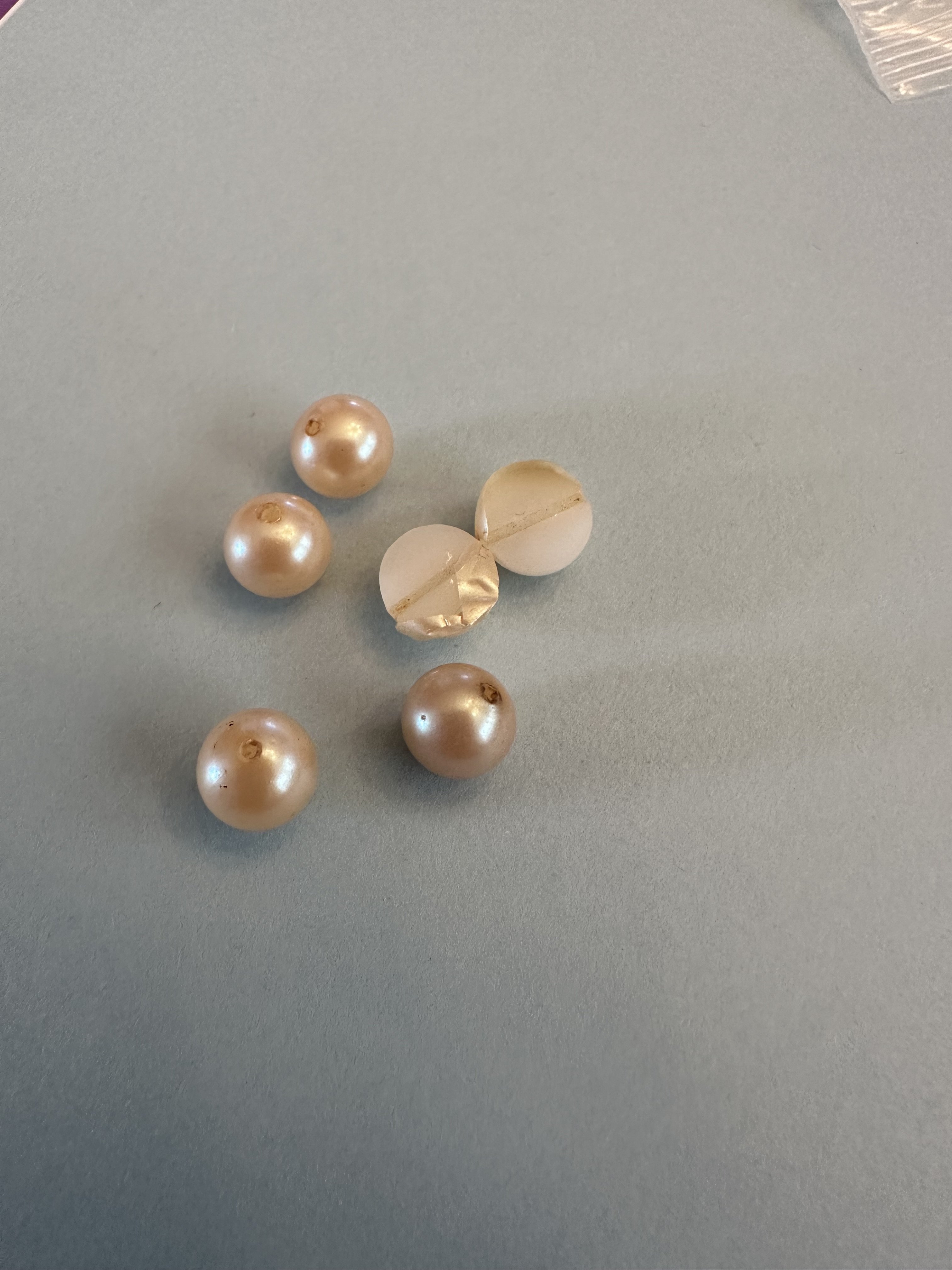 The one broken in half is definitely an imitation pearl. See the peeled off coating?