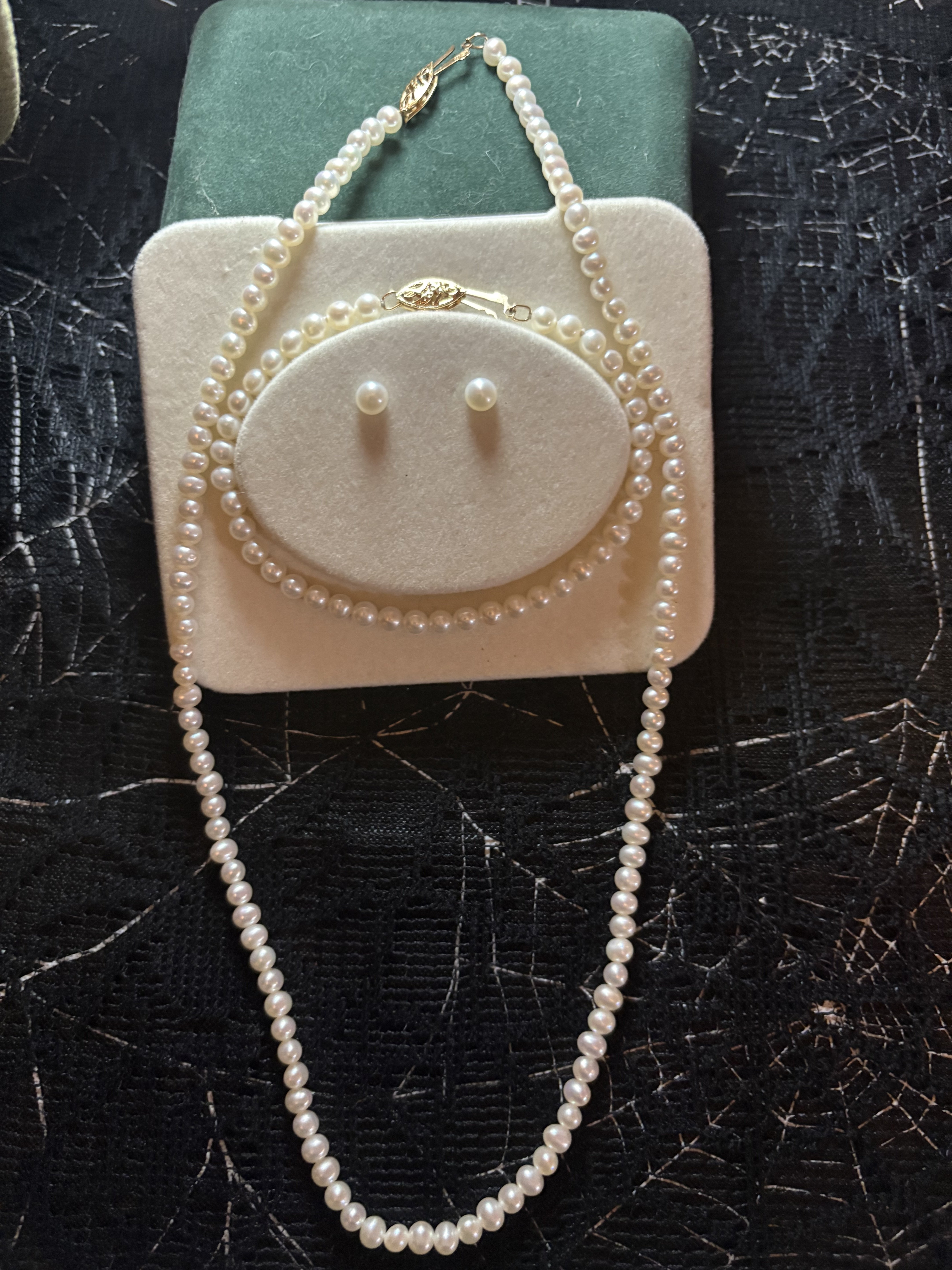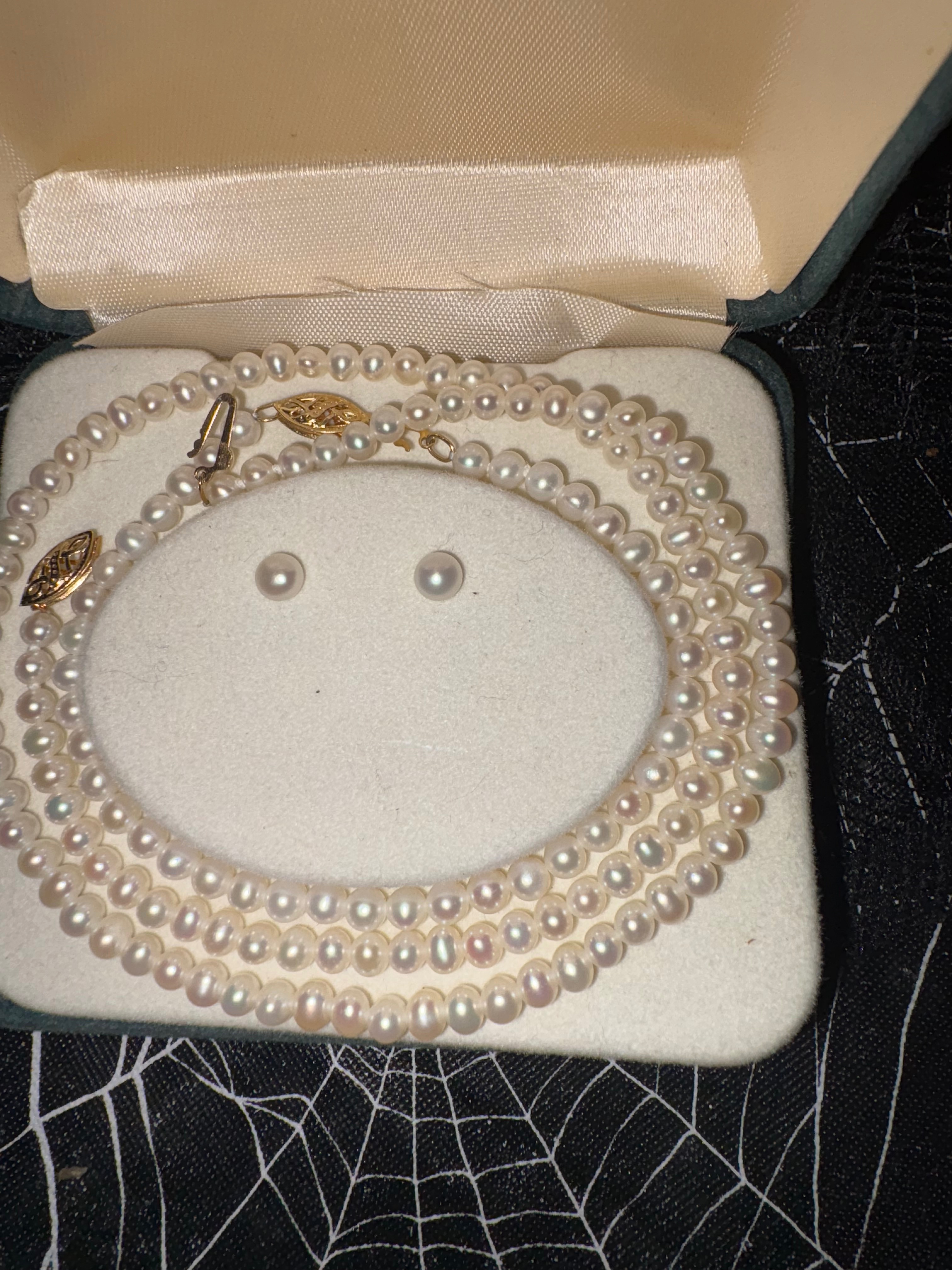 Hi!! So my grandma gave me her jewelry she said she had some pearls that were expensive so be careful with them. I can’t figure out what type they are!!! They are real gold ik that, and they are real but not sure the value !!