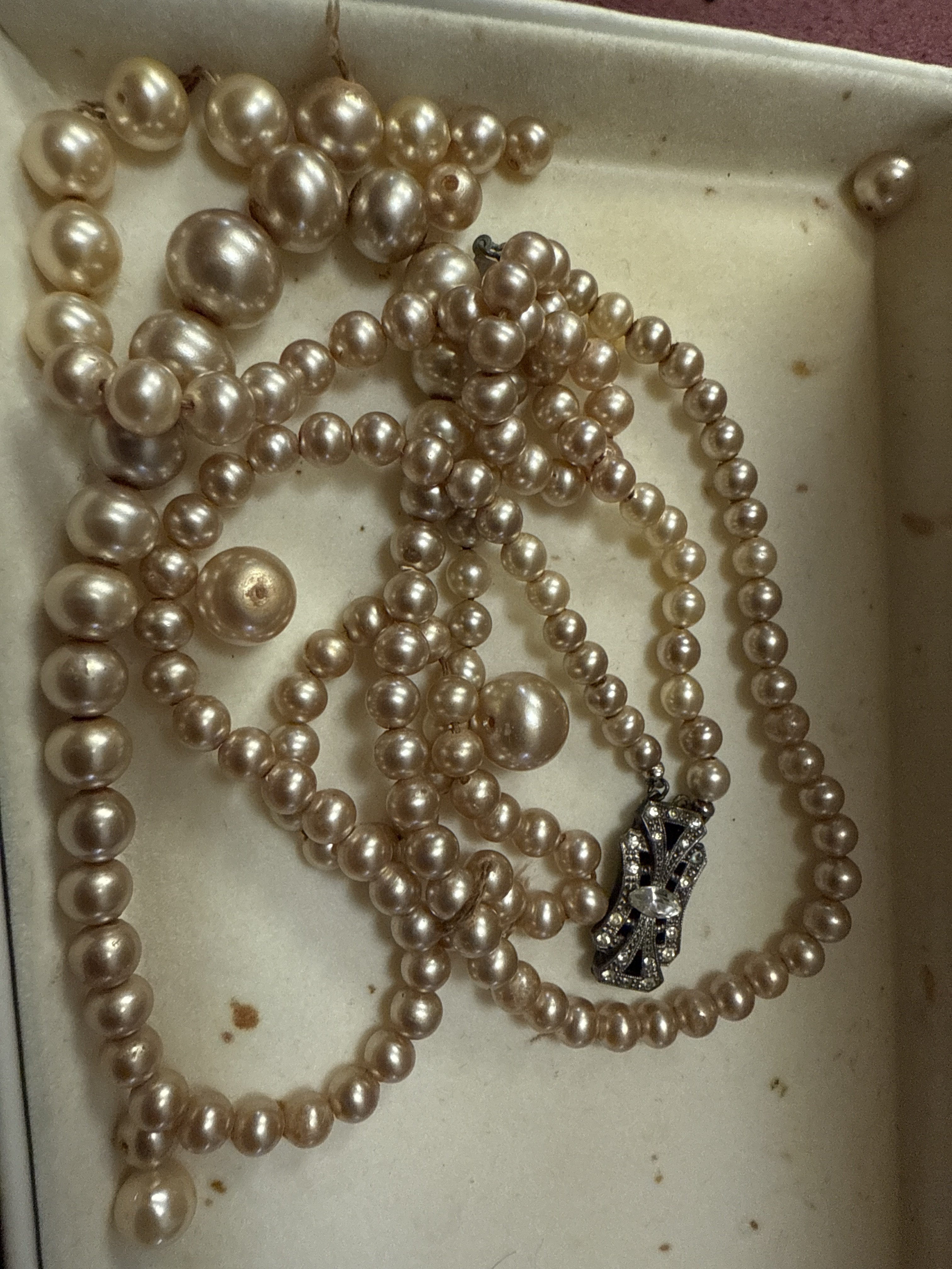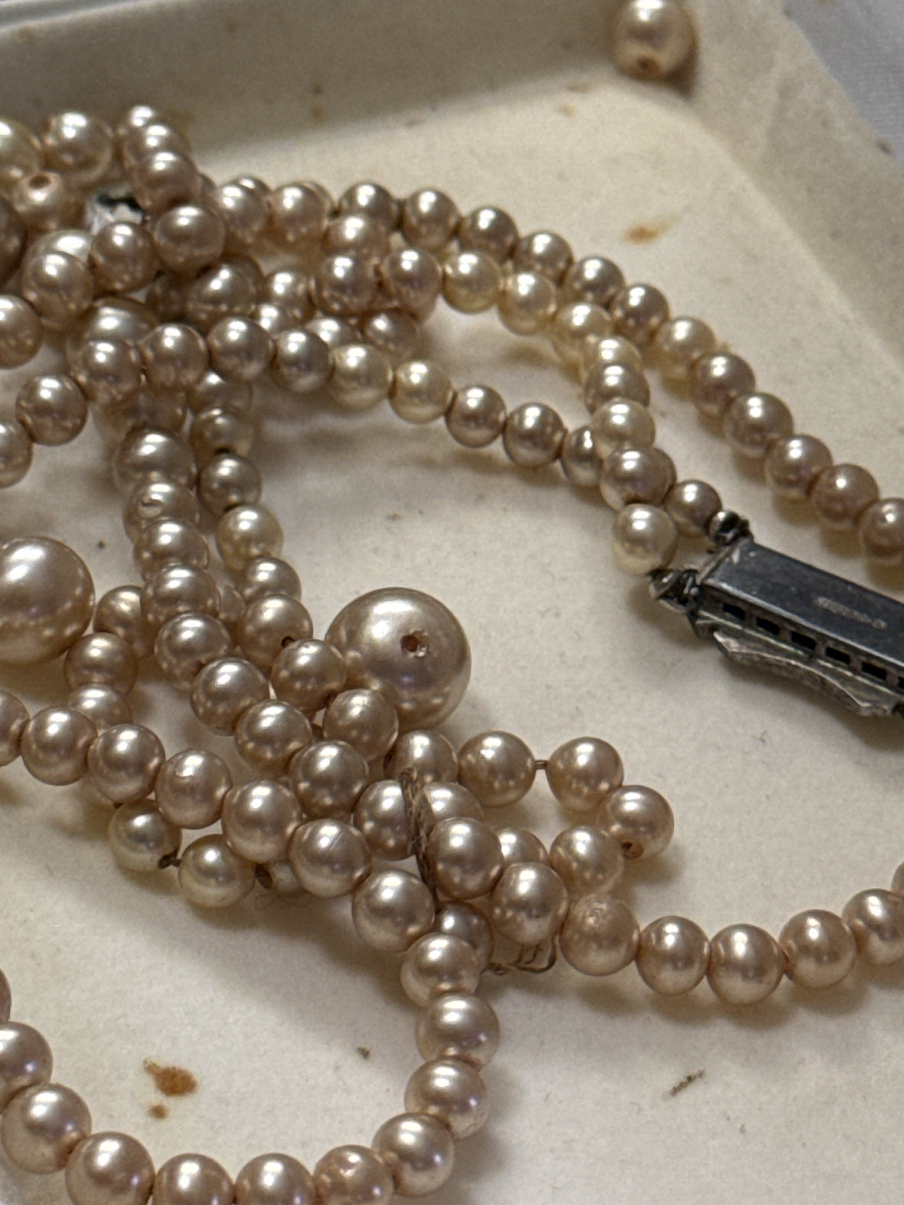 My grandmother bought these for her mother at Penney’s in 1943. My aunt gave them to me about 10 years ago and they’ve sat in a drawer since then. I took them to be restrung and the jeweler says they are plastic!?!?! Clasp says Sterling8. Thoughts?
