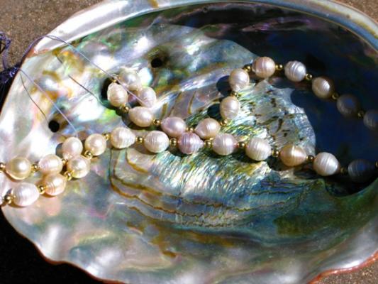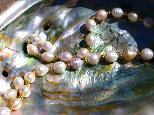 I've been searching for the right link for a while w/o sucess... so you will have to believe me on my word: a strand like that made to resemble a bowstring has won one of the top pearl design awards recently. The strand was multicolour. The 'bow' of realistic size, worn across the shoulder (like a riffle, not a bow - but again, the author was a jewelry designer who may have never considered using either!). Even w/o the bow piece, the look tells an unmistakable story!
