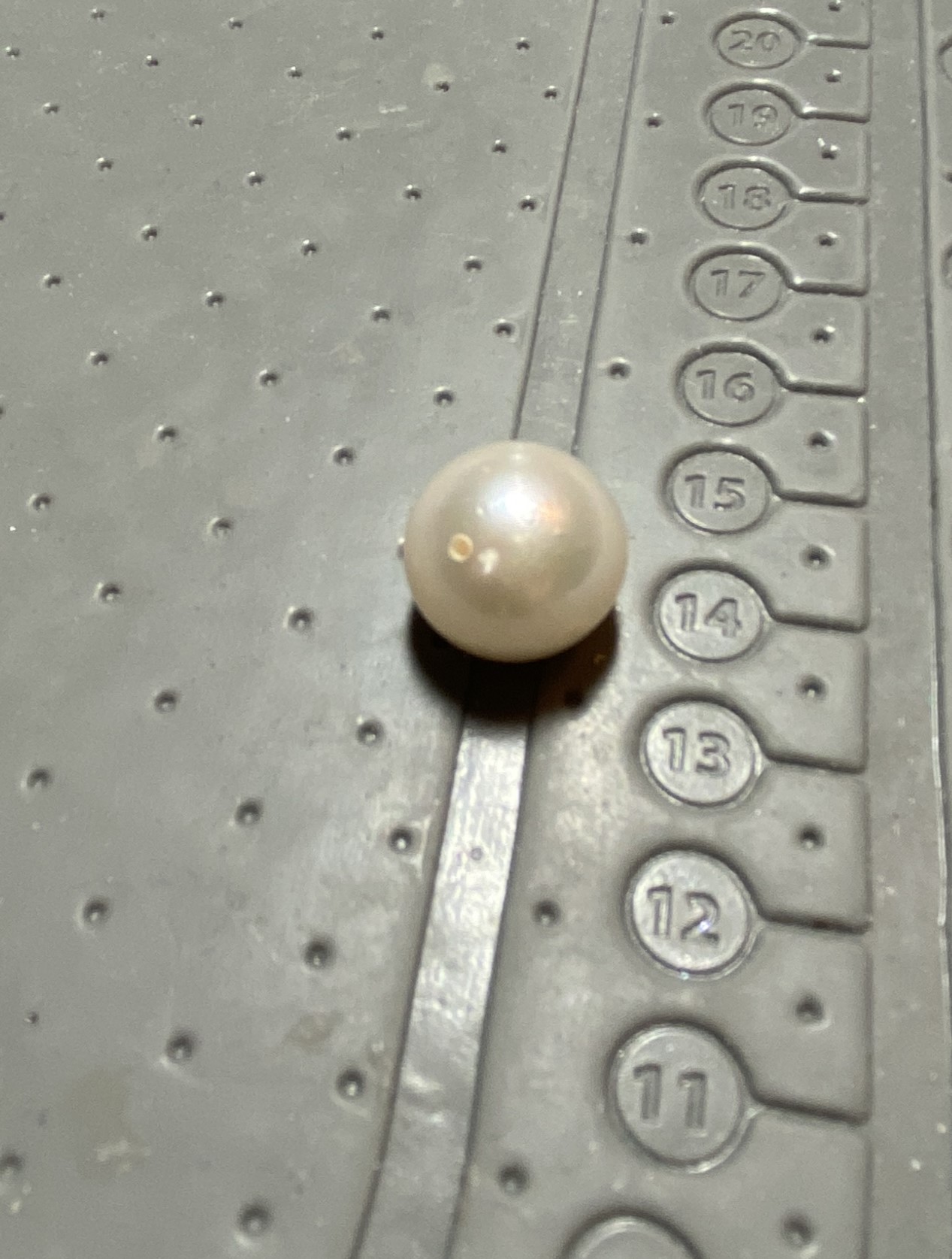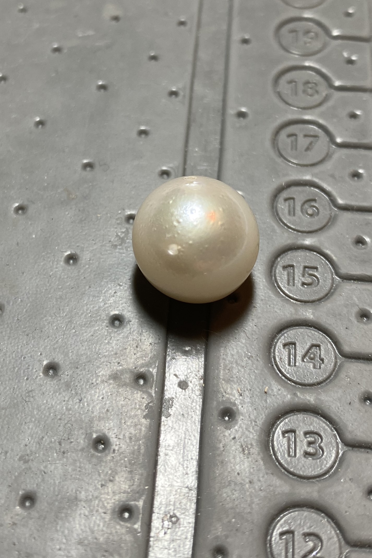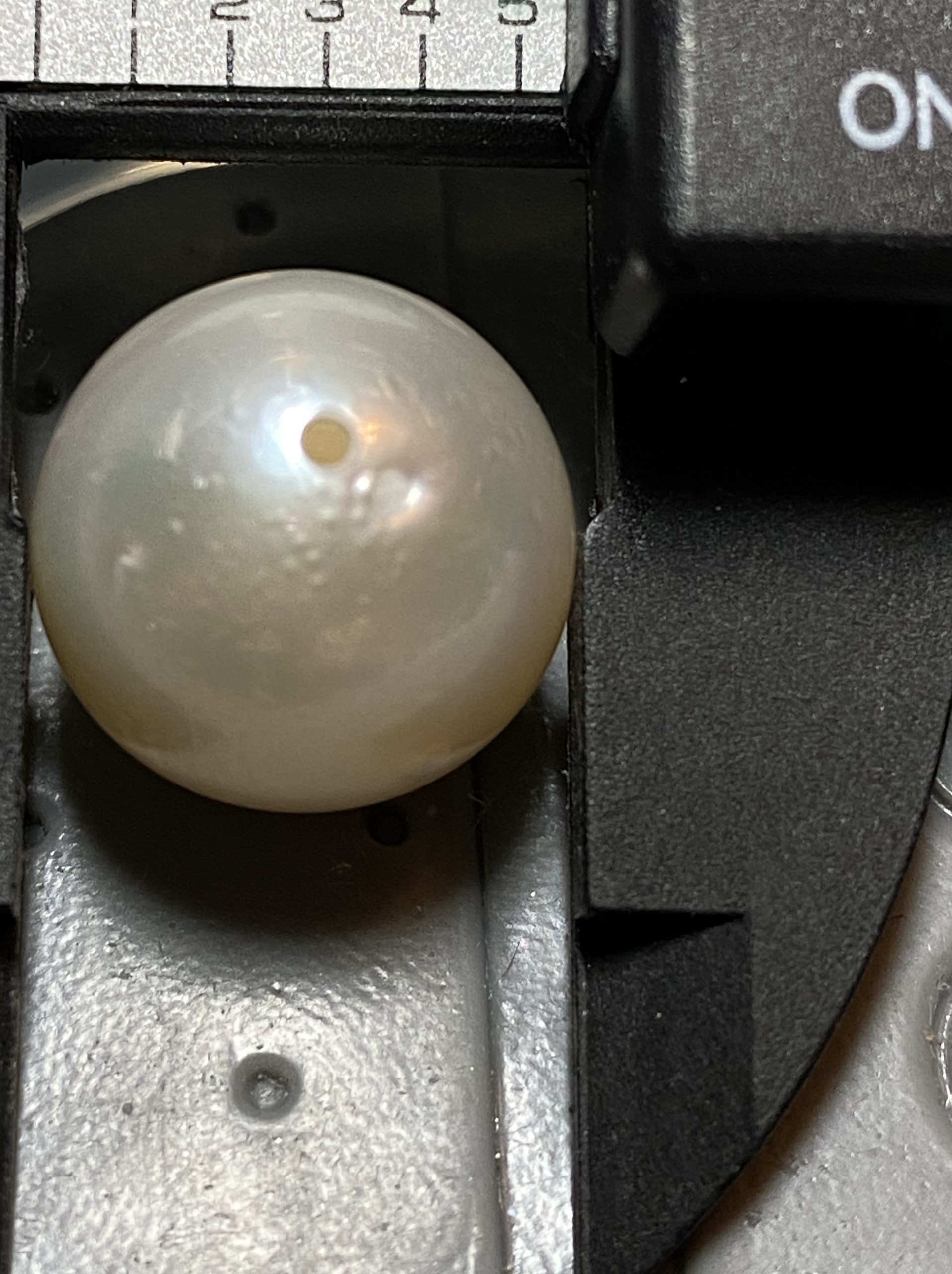 I purchased this 14mm South Sea pearl from a gem dealer. It came 1/2 drilled and right next to the drill hole is what appears to be a divot, but it is absolutely smooth on top. Almost looks like when a wood table has an indention and someone re-varnishes it and the hole filles up with varnish and it hardens.