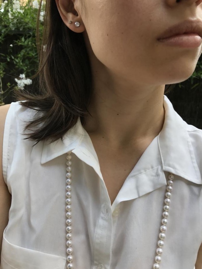 I'm not a matchy-matchy person. I tend to wear pearl drop earrings with a pearl pendant instead of a strand. I'll wear gold earrings with a strand. I tend to wear pearl studs when I'm not wearing any other jewelry.