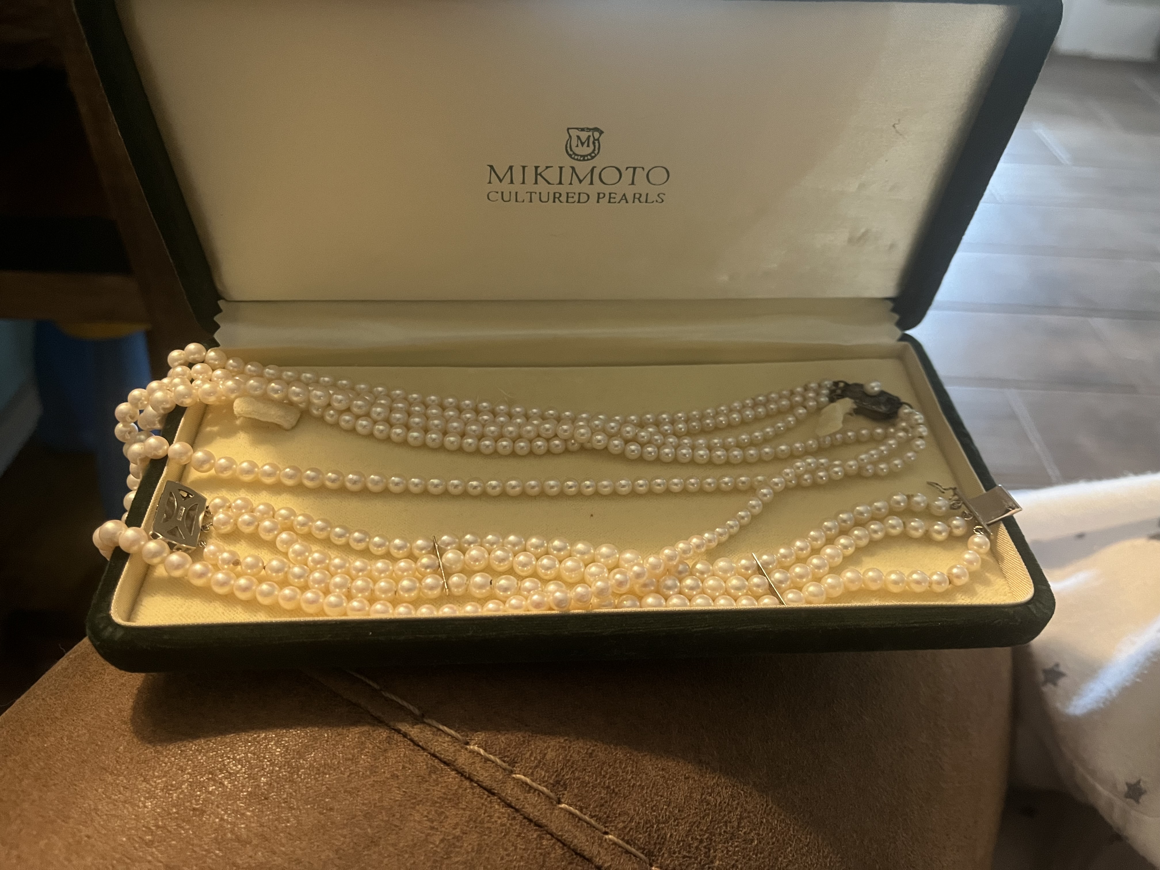 My mother has recently come across severe financial hardship and has requested my help. She wants to sell her (1970) triple strand Mikimoto pearls (Silver Clasp). She received these after Christmas of 1970 as my father returned from military.