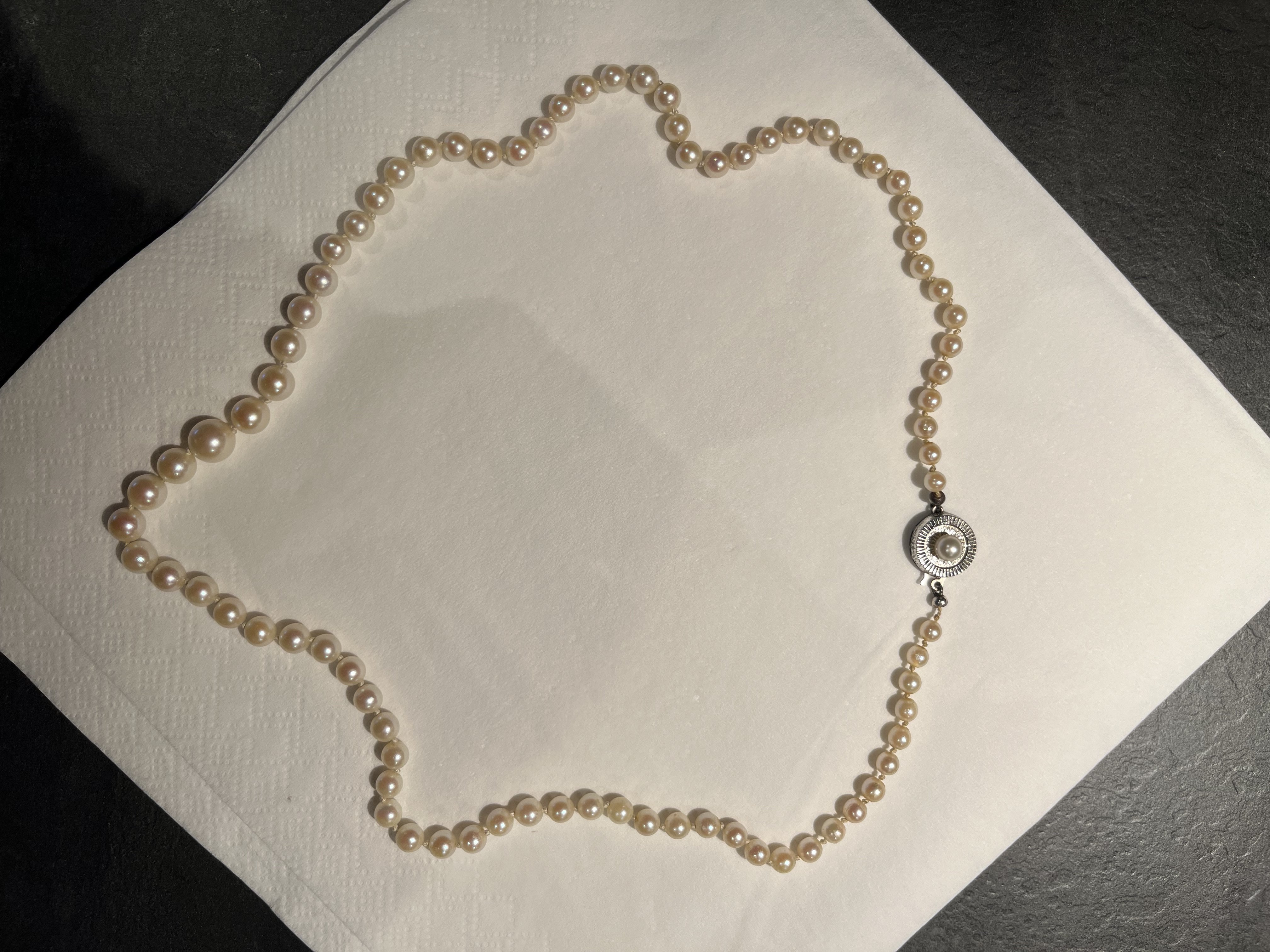 As I mentioned in that post, my grandmother was fond of jewellery, and especially pearls. I inherited more pearls that I am curious about.