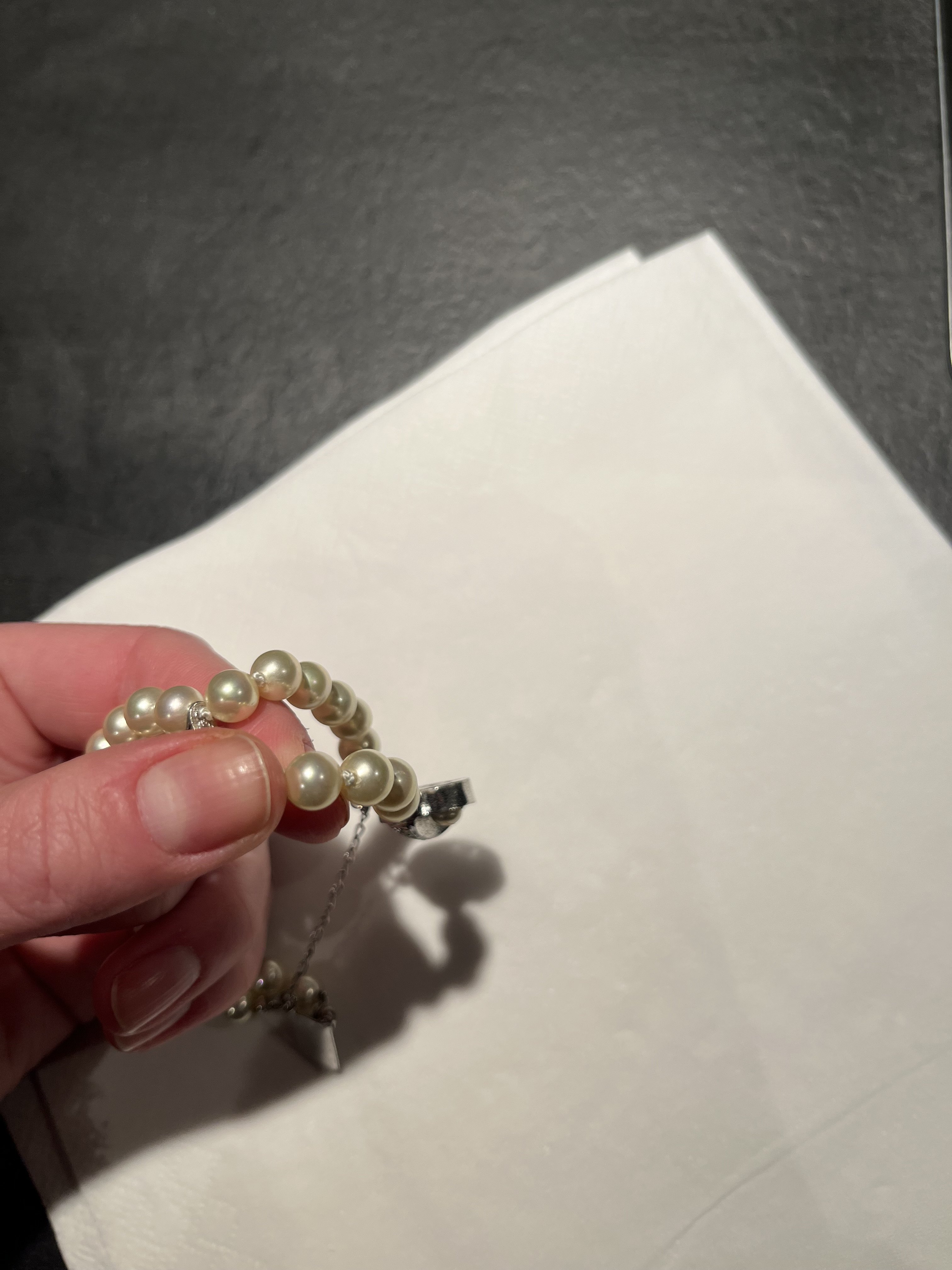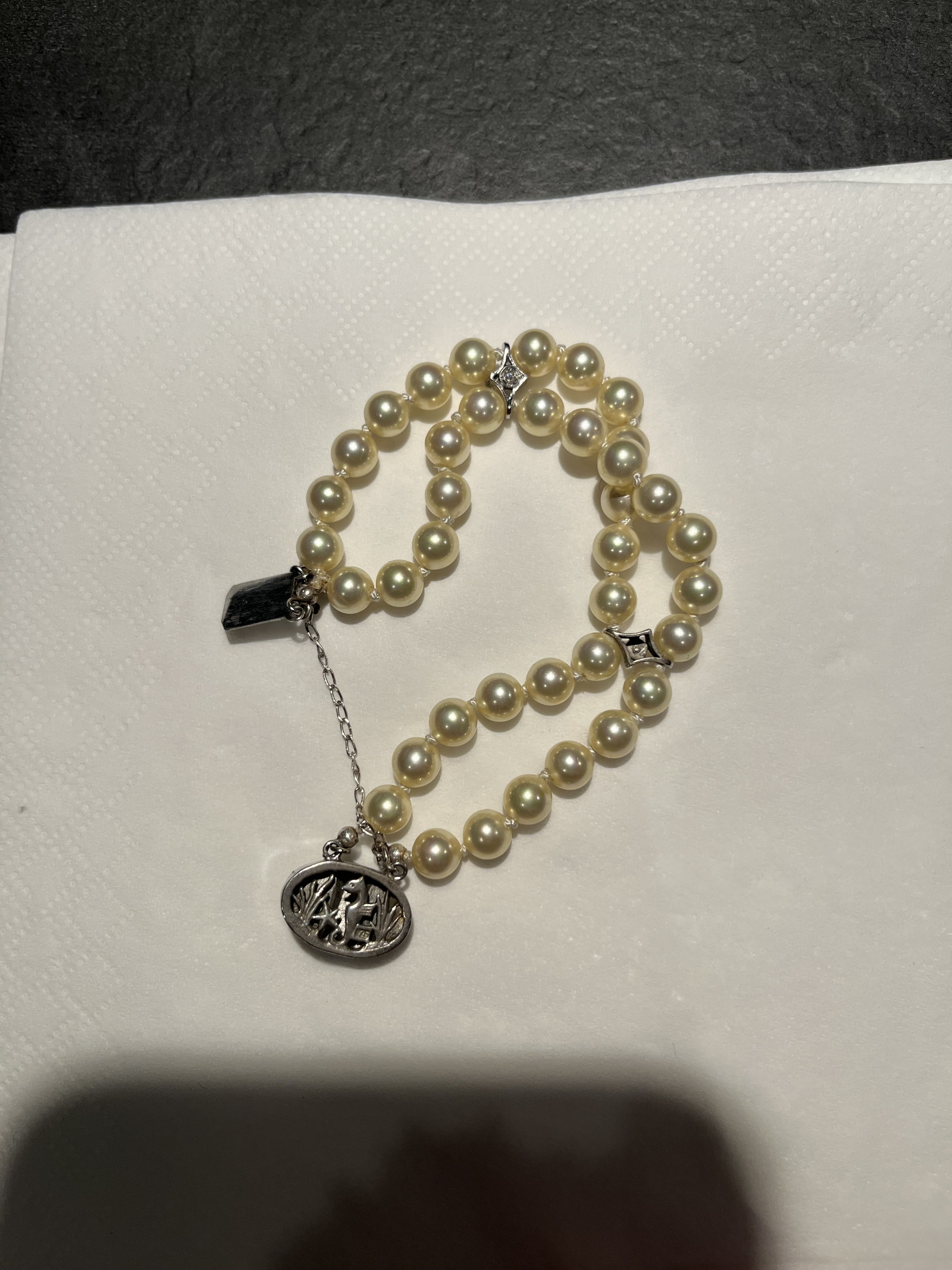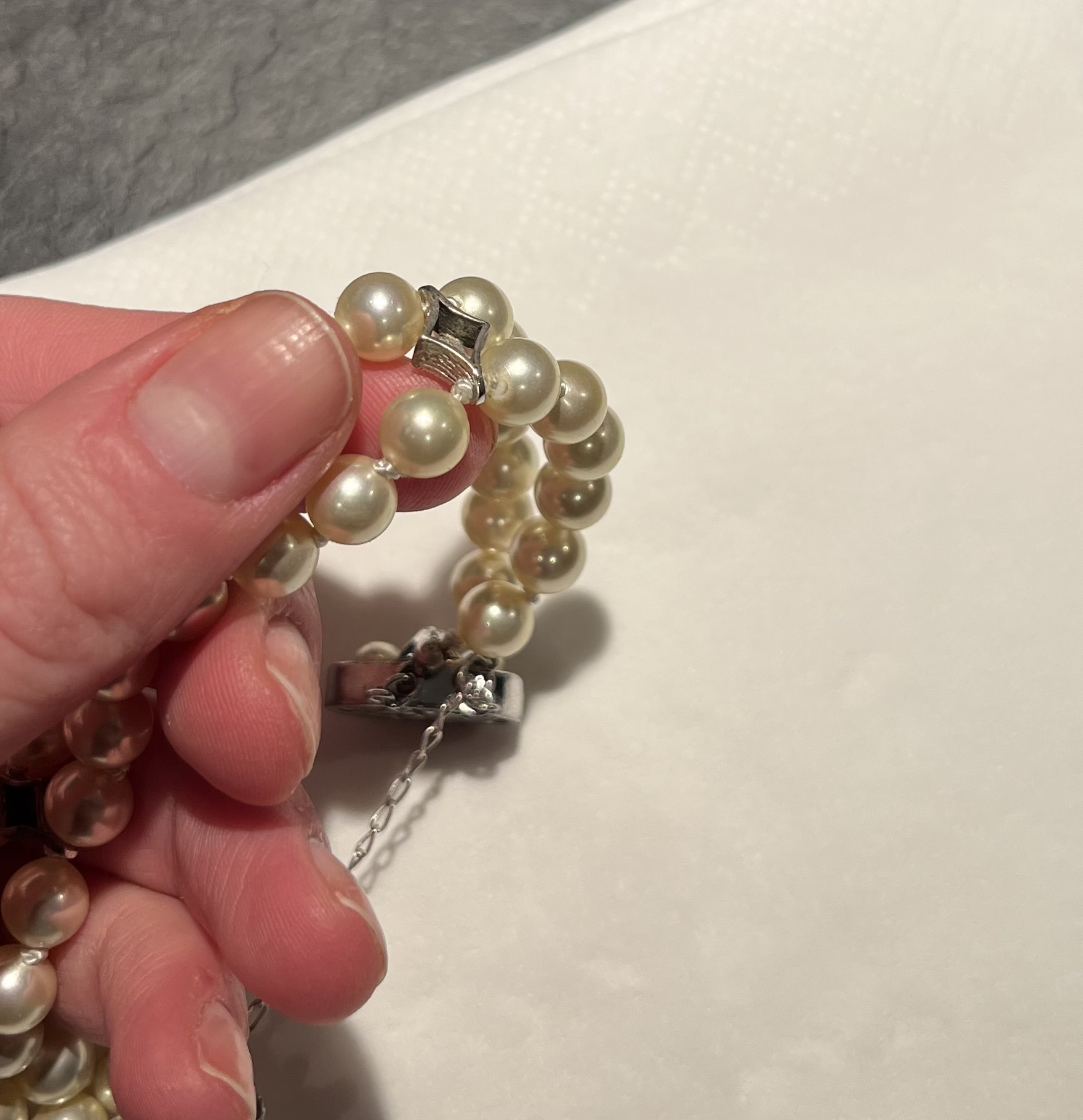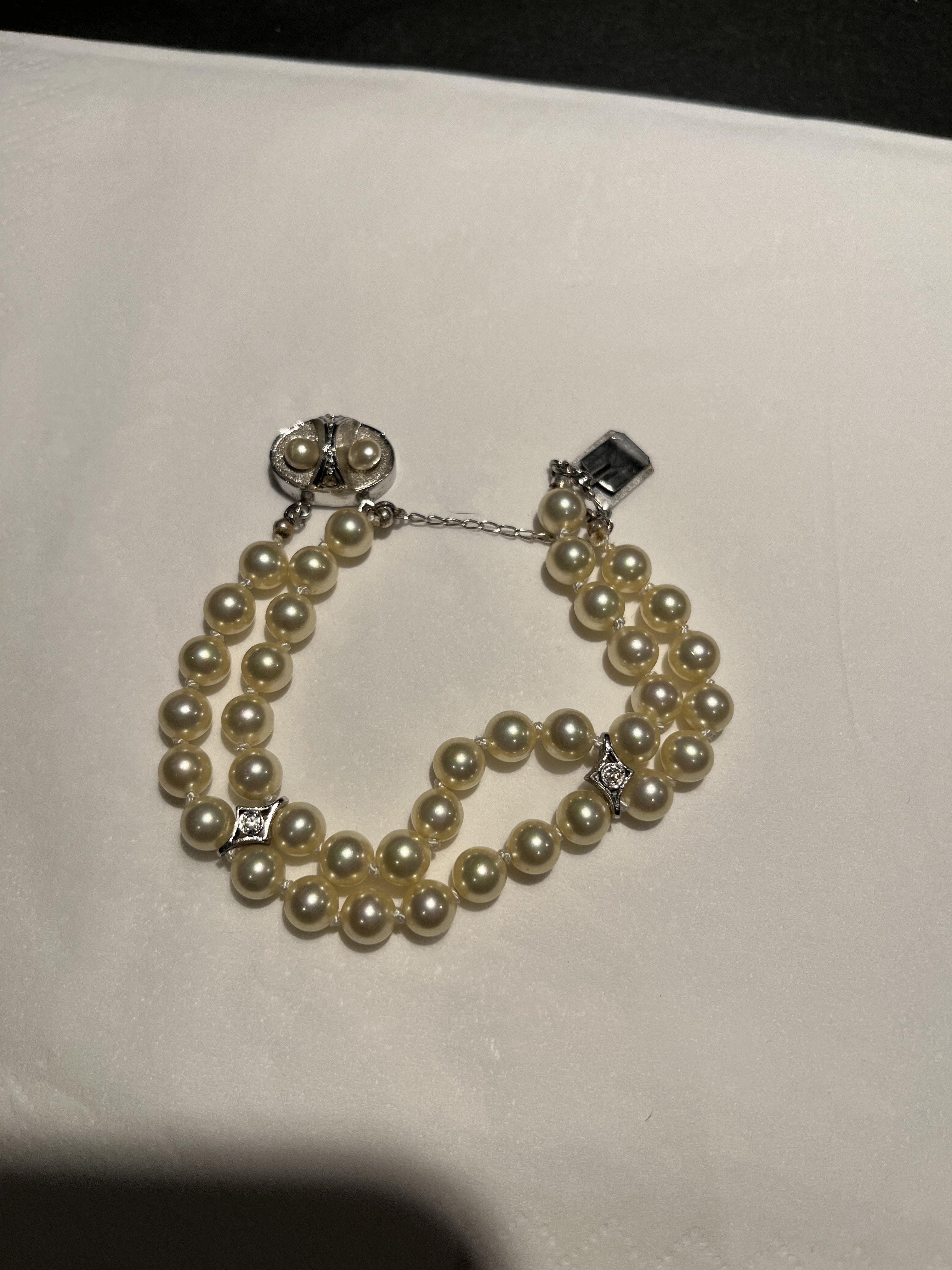 2: Bracelet. This was broken, but I went to the jeweler and had it repaired. The jeweler said they were real pearls, but not what kind. What du you think?