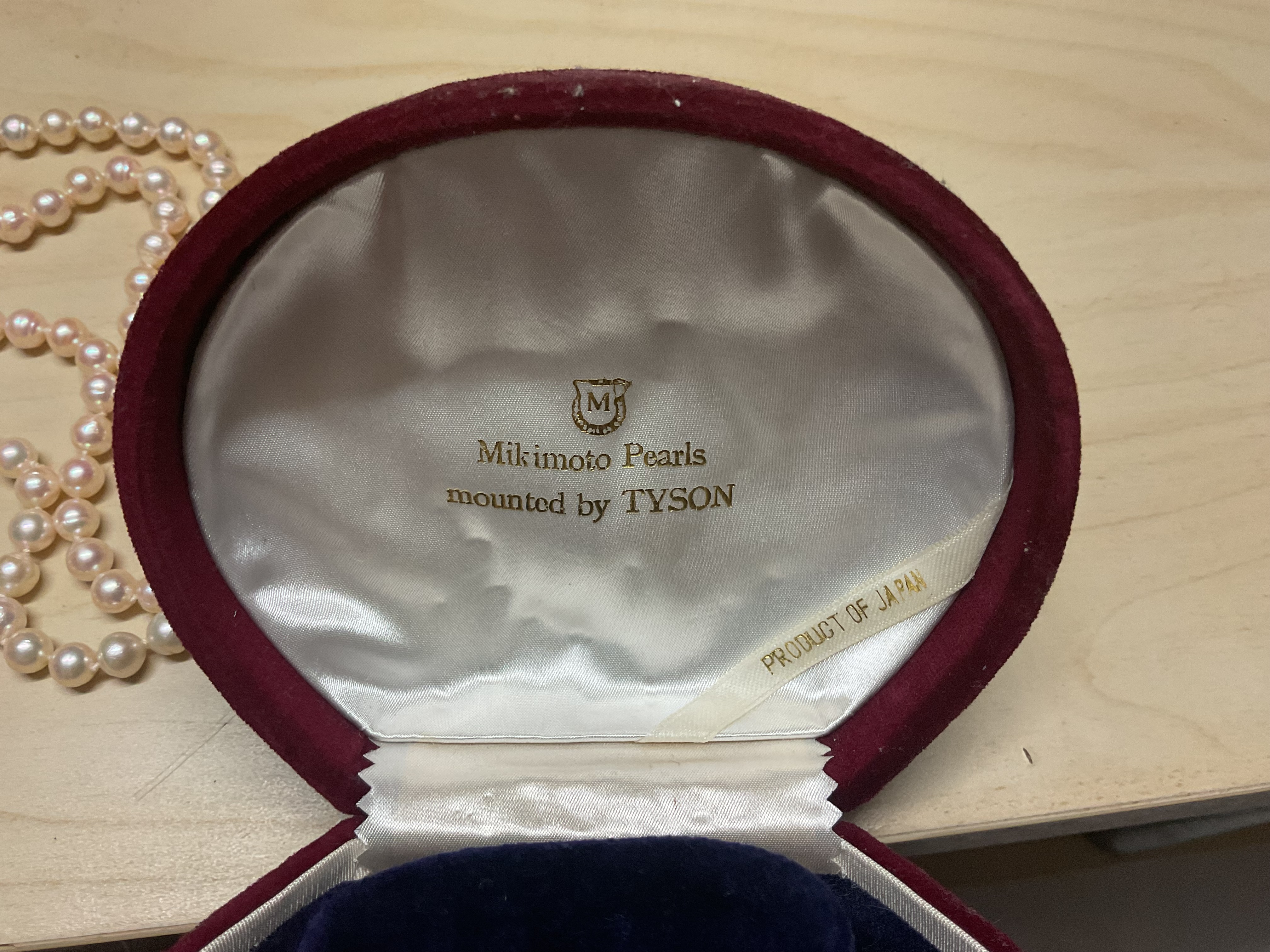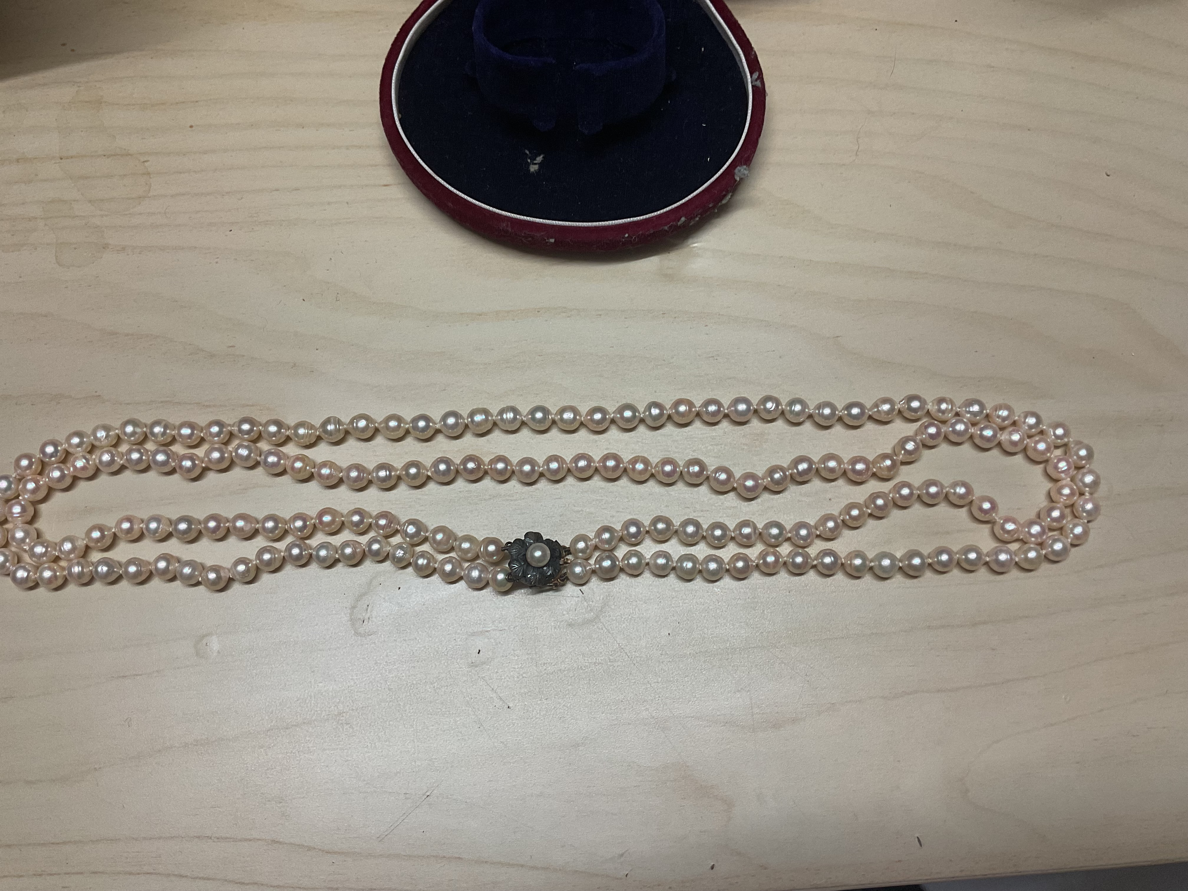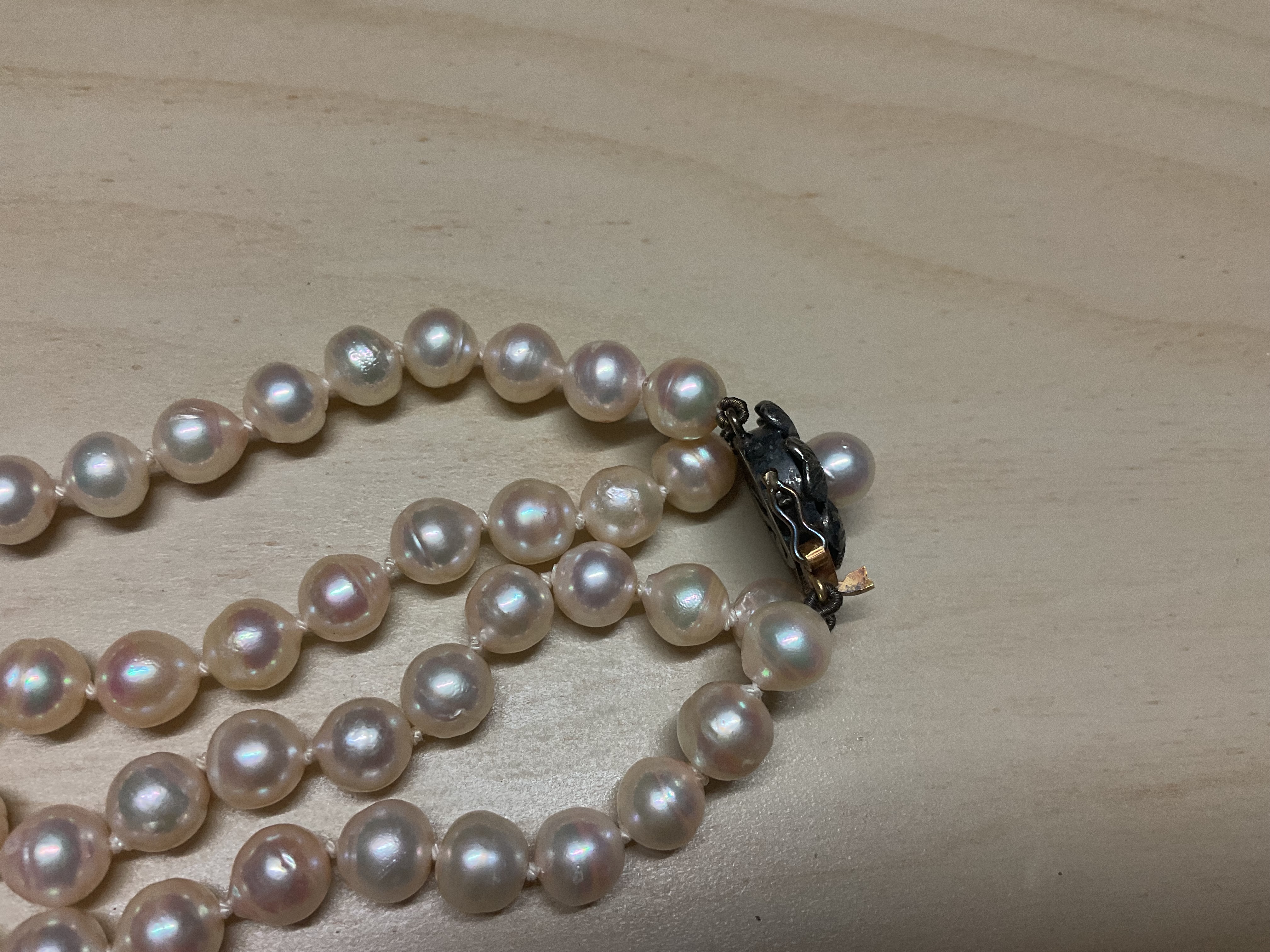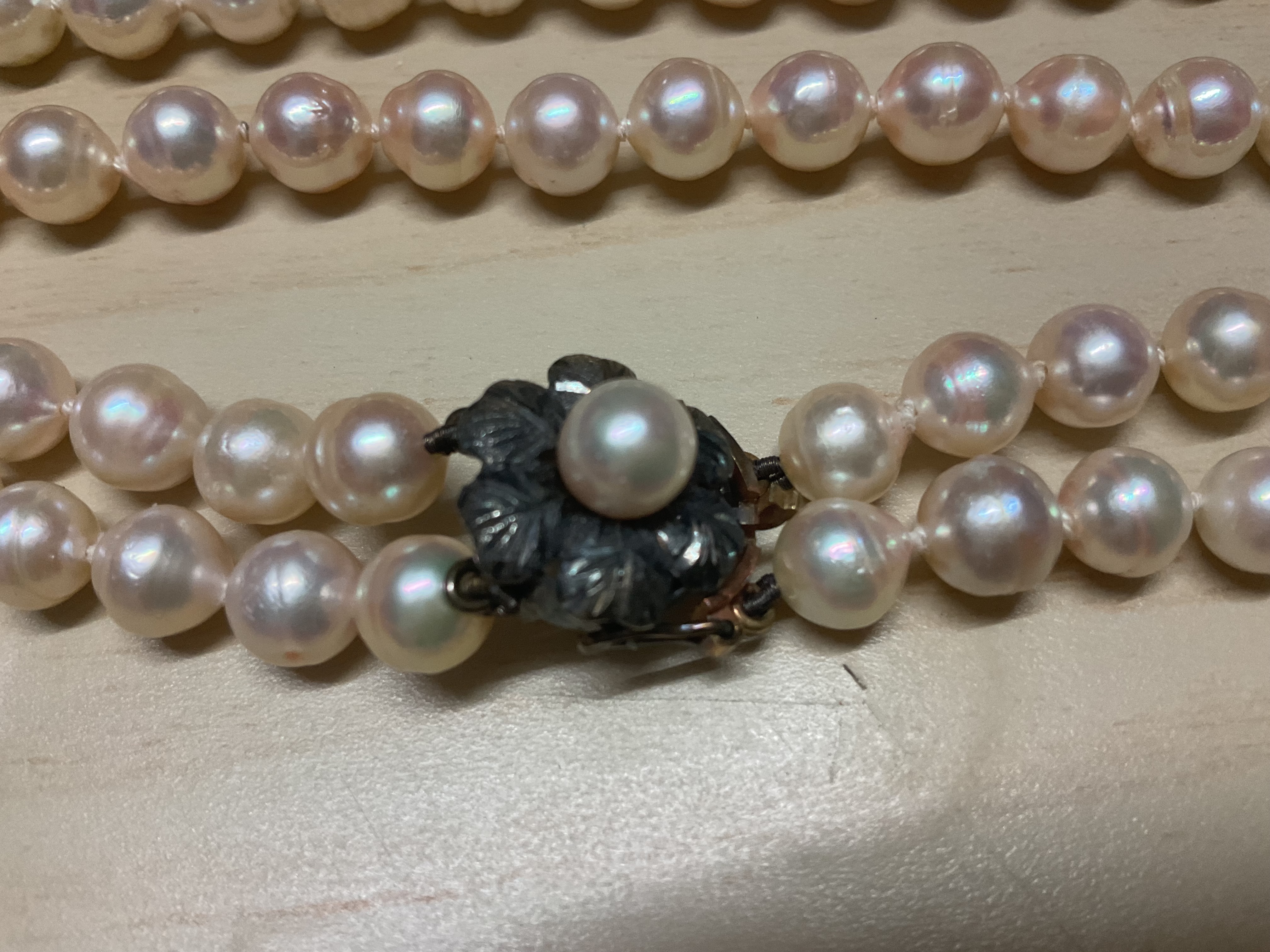 Ive got a mikimota double beaded pearl necklace and single pearl clasp( unusual methodology of securing the pearls with the flasps structure, however)