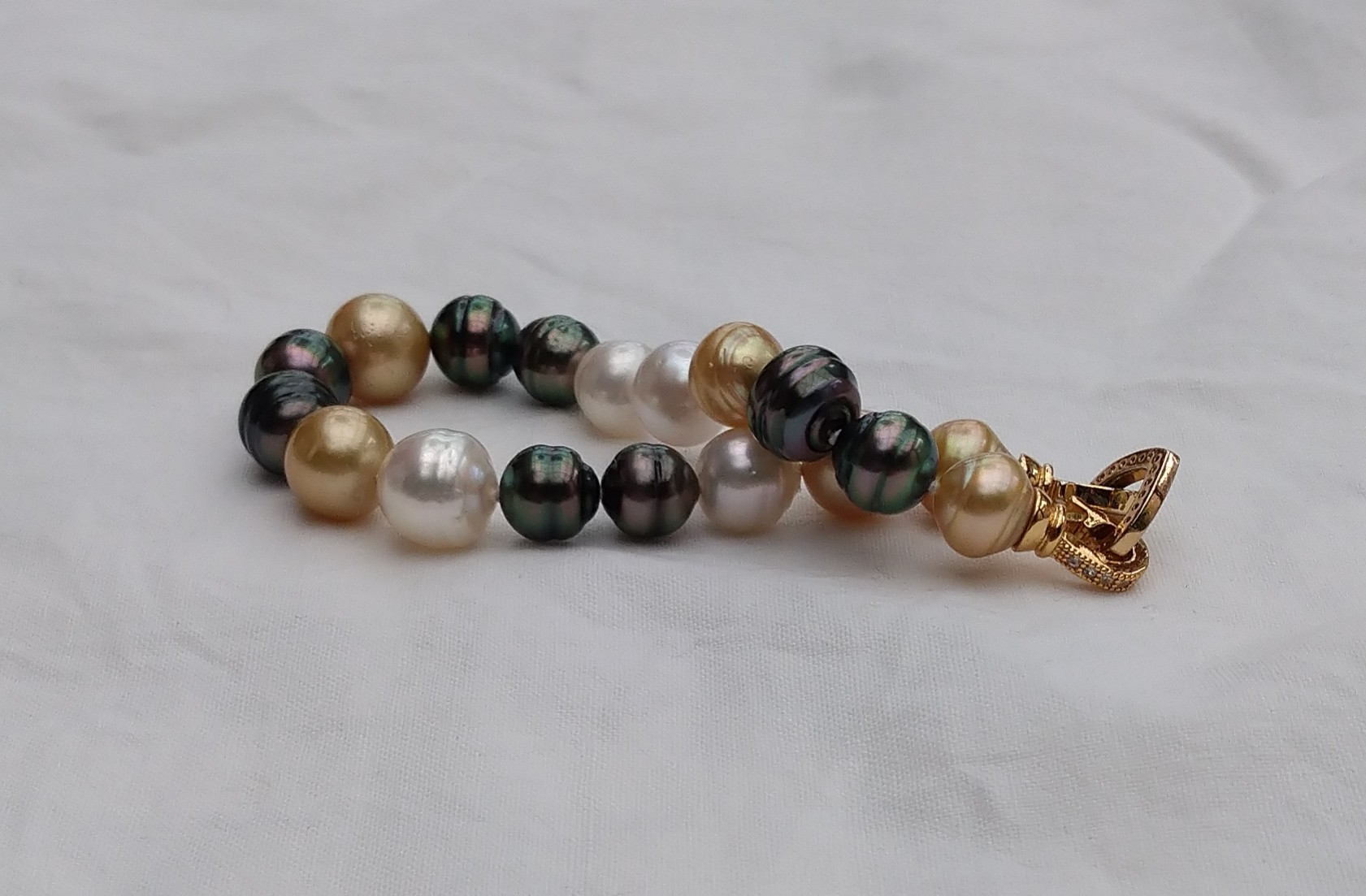Ok have been digging up my vintage gemstone clasps again. But haven't gotten any photos yet. I added the white gold, rubies and one akoya one to my Hearts Delight. Then the pretty aquamarine and akoya clasp to my ombre tahitian rope. Lets see if I can find a photo of the clasps at least.