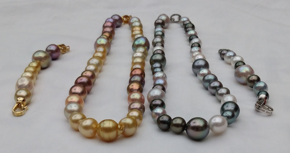 And a mixed south sea and tahitian bracelet with the more oval ones